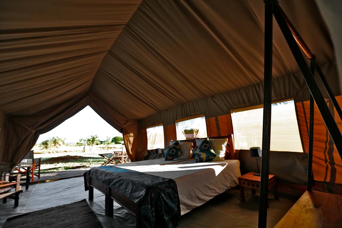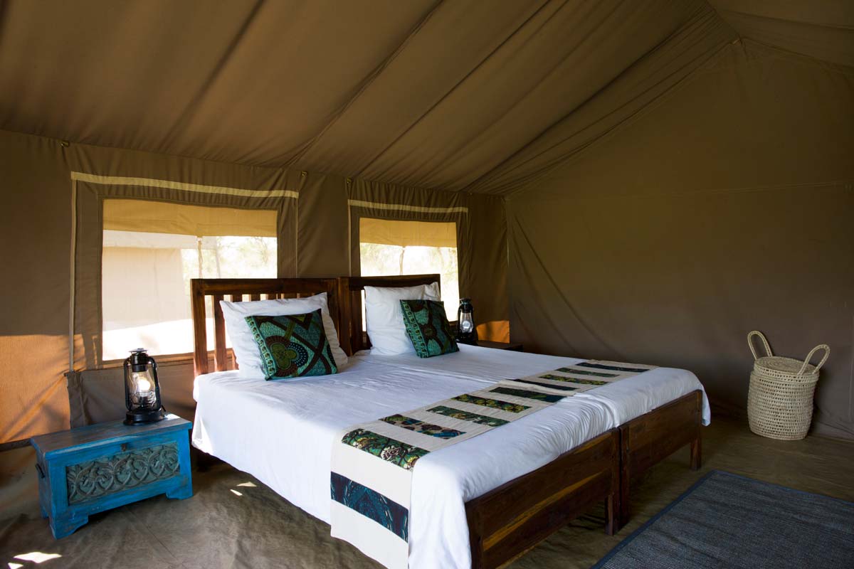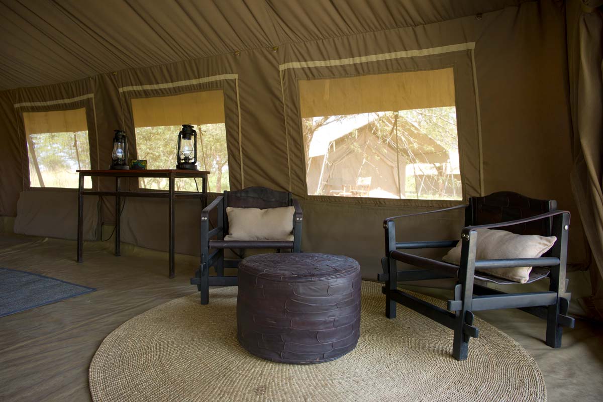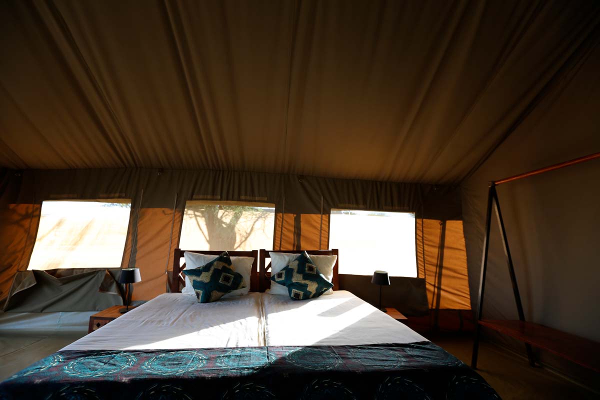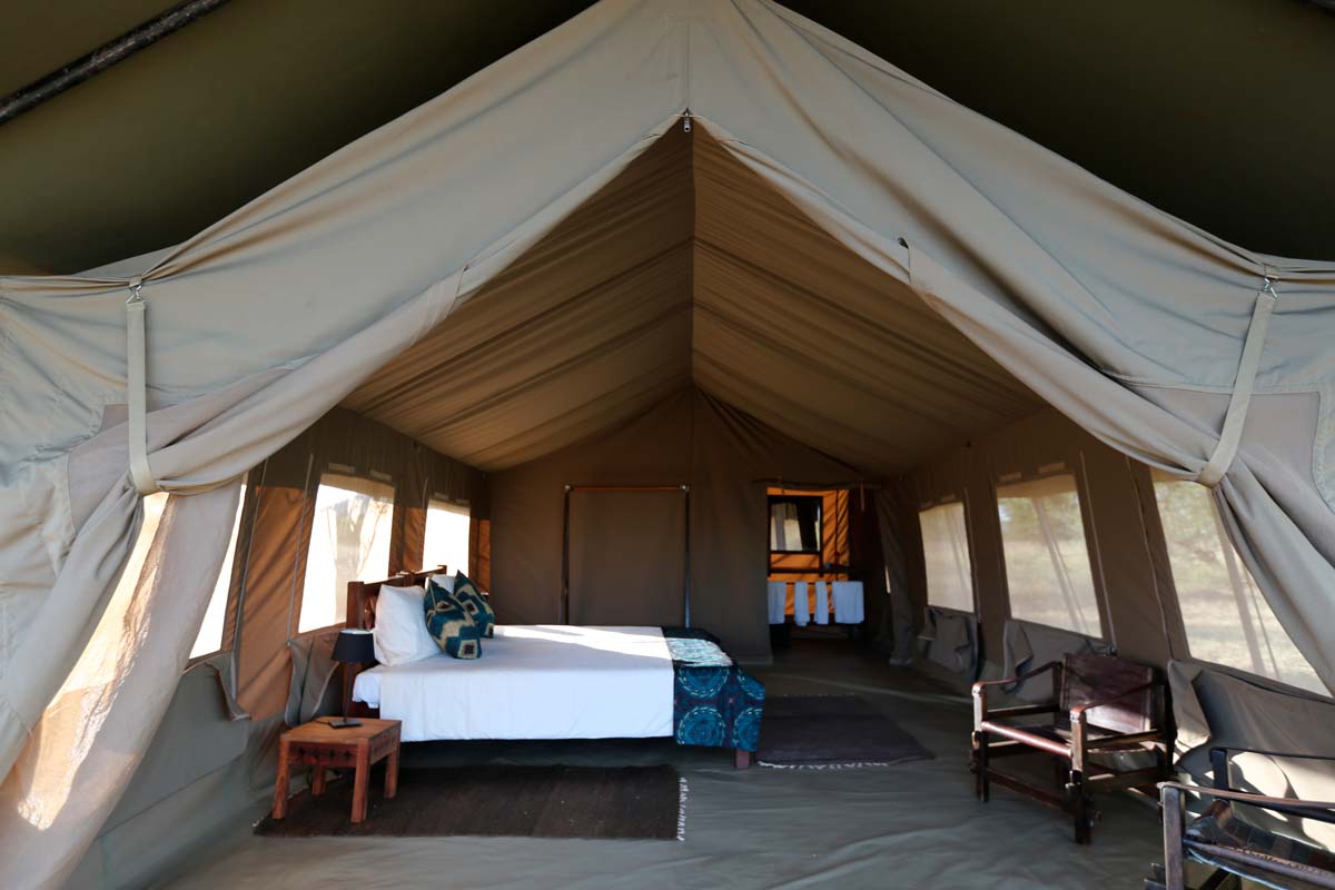 RONJO CAMP ne propose que 16 tentes réparties de part et d’autre de la « mess tent ». Elles offrent le charme de l’Afrique authentique et des raffinements dont ne rêvaient probablement pas les premiers explorateurs : lits, lampe, salle de bains avec douche, lavabo et toilettes! En outre, l’observation depuis les fauteuils situés devant chaque tente vaut bien plus que la présence de la climatisation!