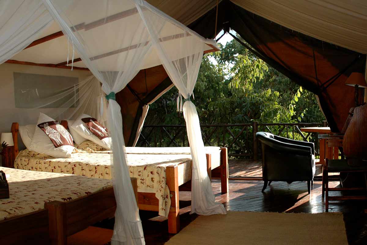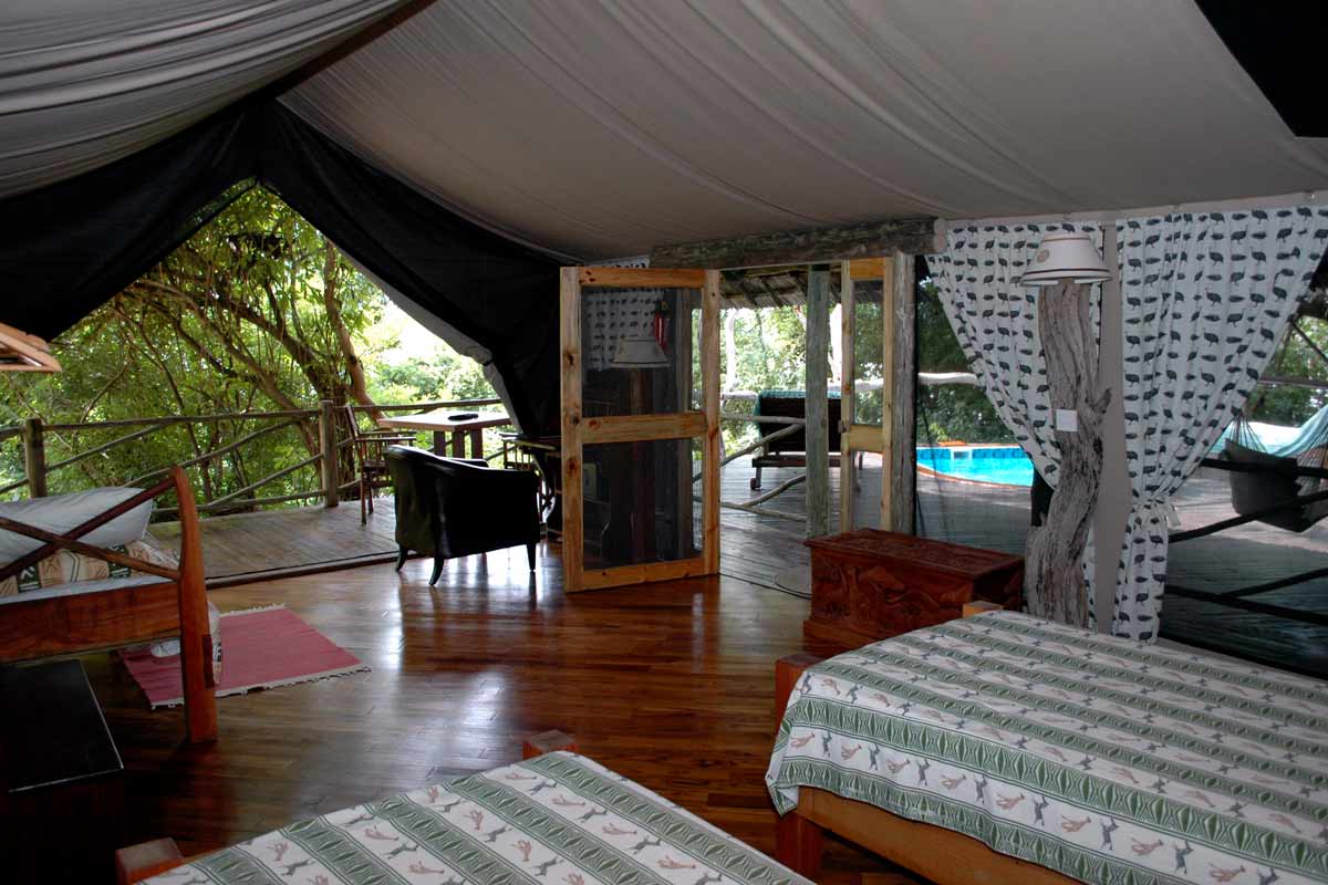 RUFIJI RIVER CAMP se dresse sur les berges de la rivière Rufiji, dans la partie est de la réserve de Selous. Les berges attirent de nombreux animaux qui viennent s’y abreuver alors que de placides hippopotames se prélassent dans les eaux tranquilles. Les crocodiles, plus sournois, ne sont jamais très loin.