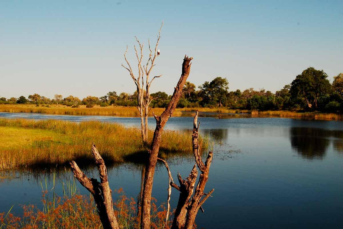 SAVUTI CAMP profite pleinement de ce changement hydrographique : situé dans une zone sèche une partie de l’année (face à un point d’eau qui attire de nombreux animaux et tout particulièrement les éléphants), les eaux entourent le camp depuis 2009 à la saison des hautes eaux et lui confèrent un panorama exceptionnel.