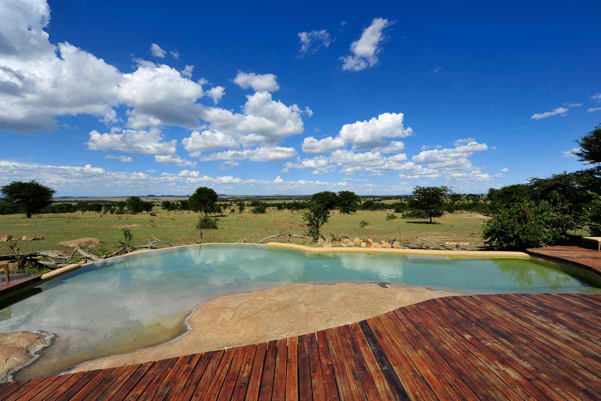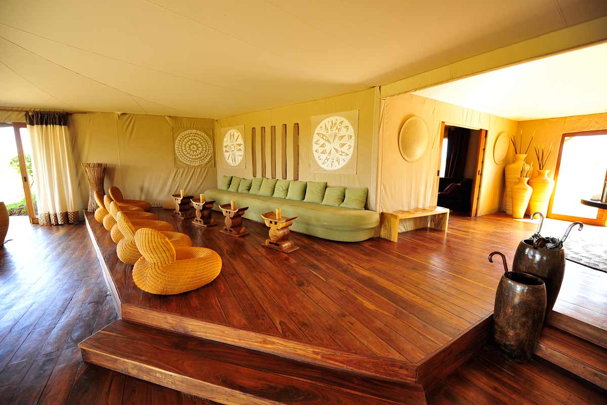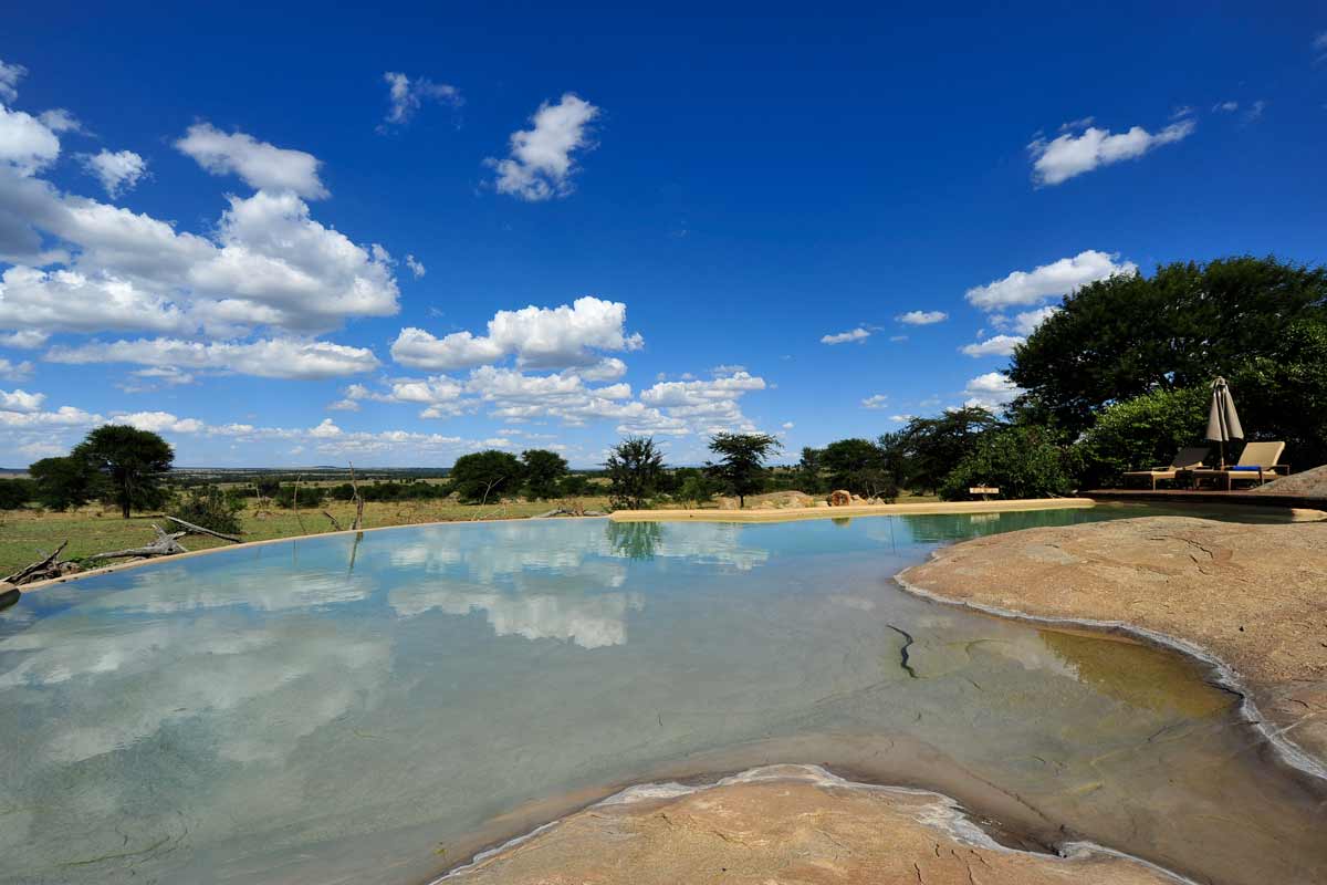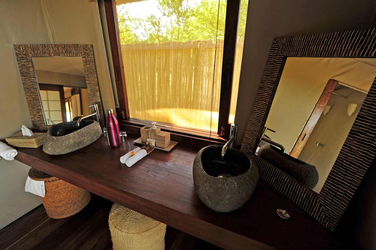 Les tentes des parties communes (une pour le salon et le bar et une autre pour la salle à manger) se situent à proximité d’une superbe piscine taillée dans la roche.