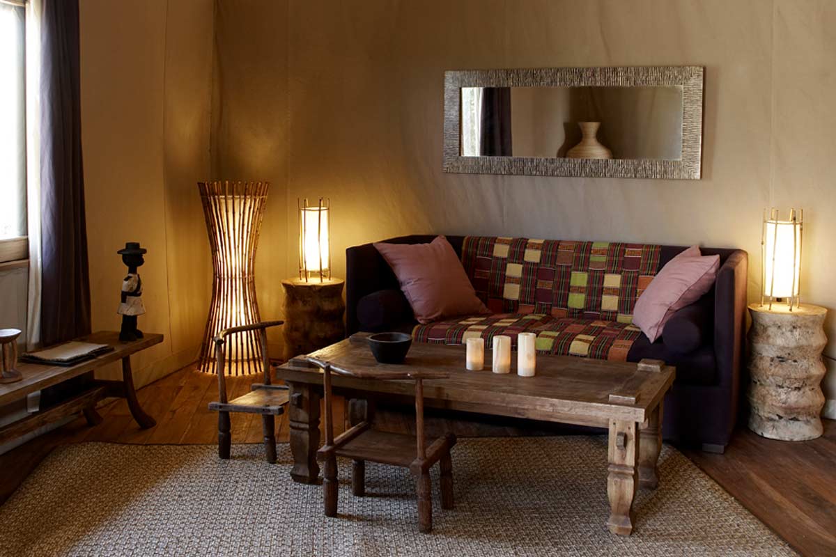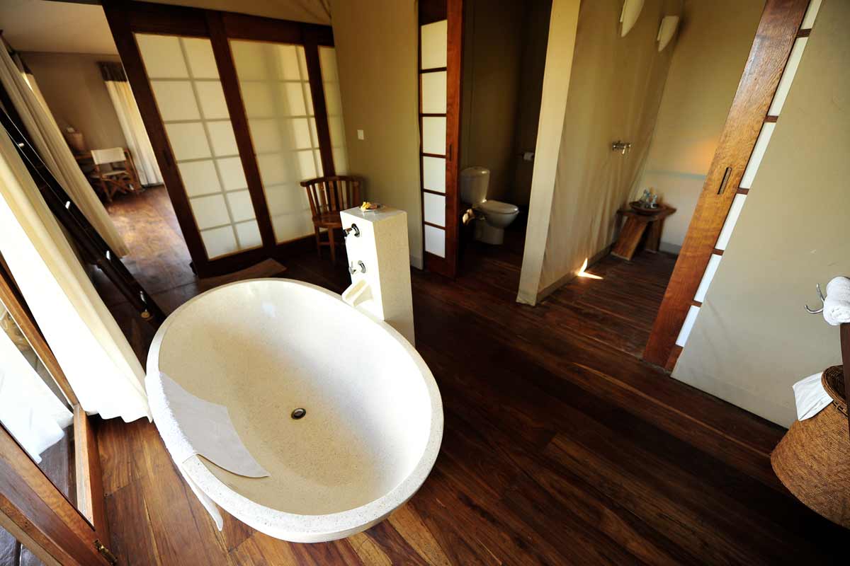 Spacieuses, les tentes offrent une décoration d’influence japonaise (lit en bambous, panneaux coulissants…) et un grand confort : terrasse, salle de bains avec double vasque, douche, baignoire…