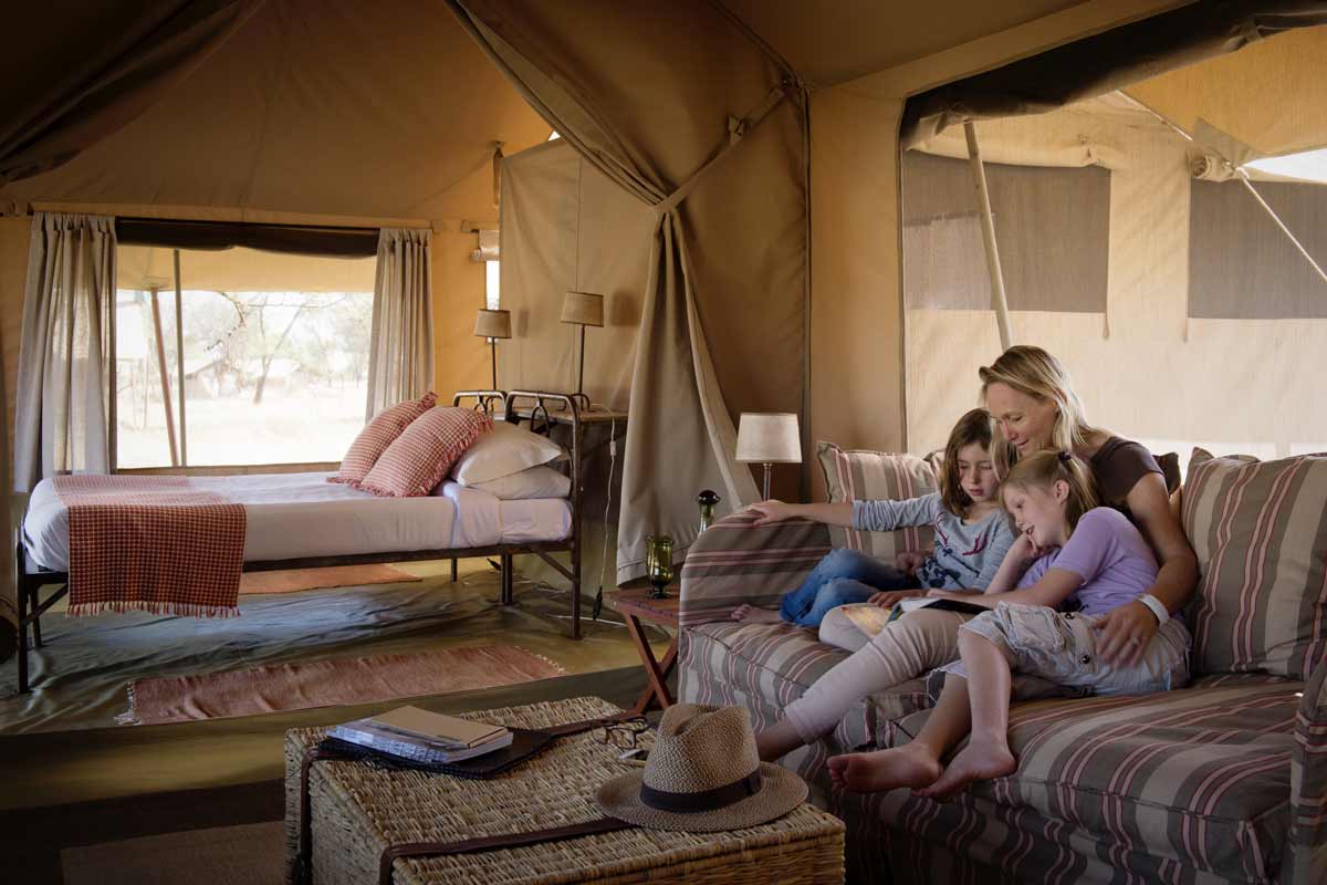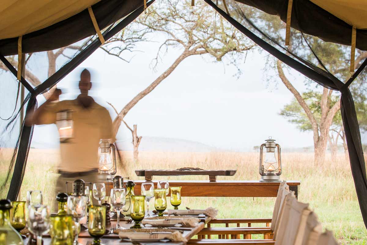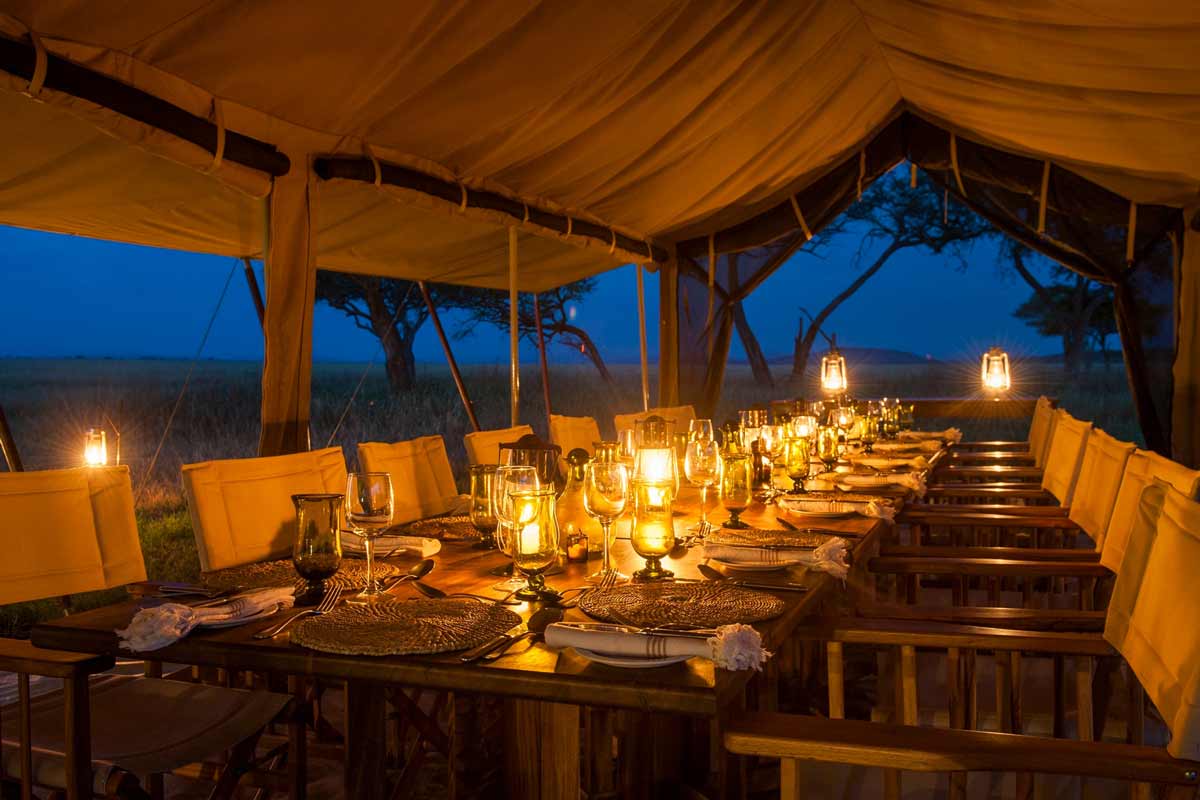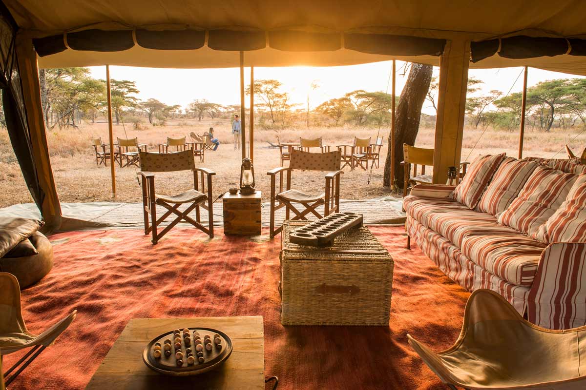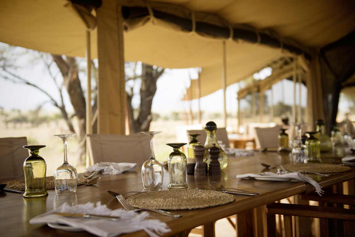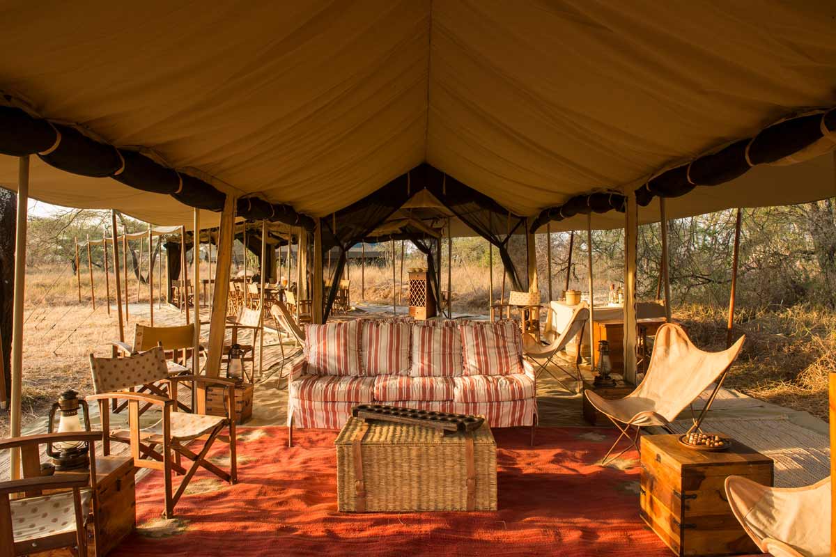 Les parties communes Serengeti Safari Camp accueillent, sous une vaste tente, le salon et le restaurant.