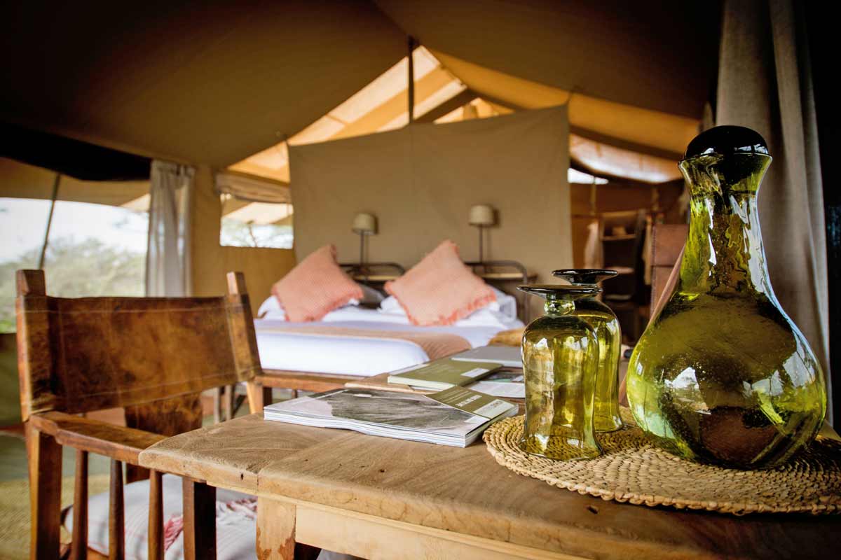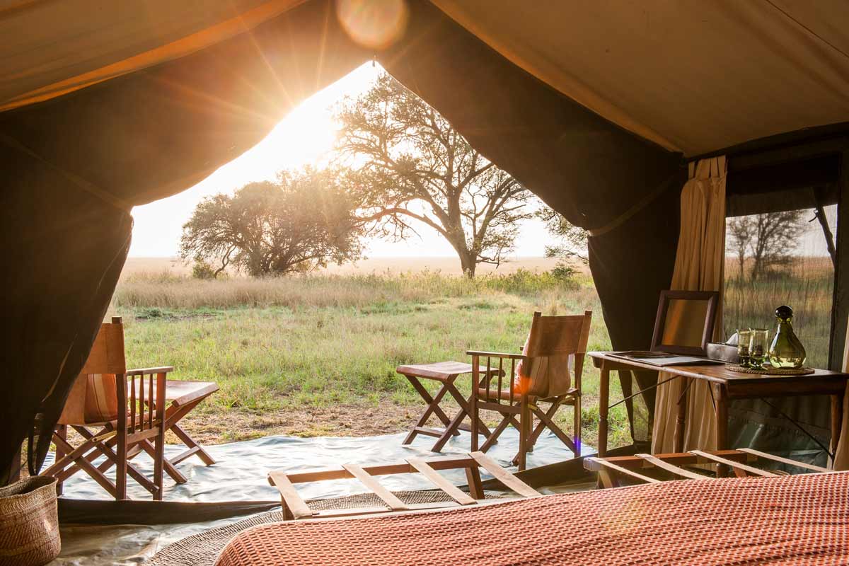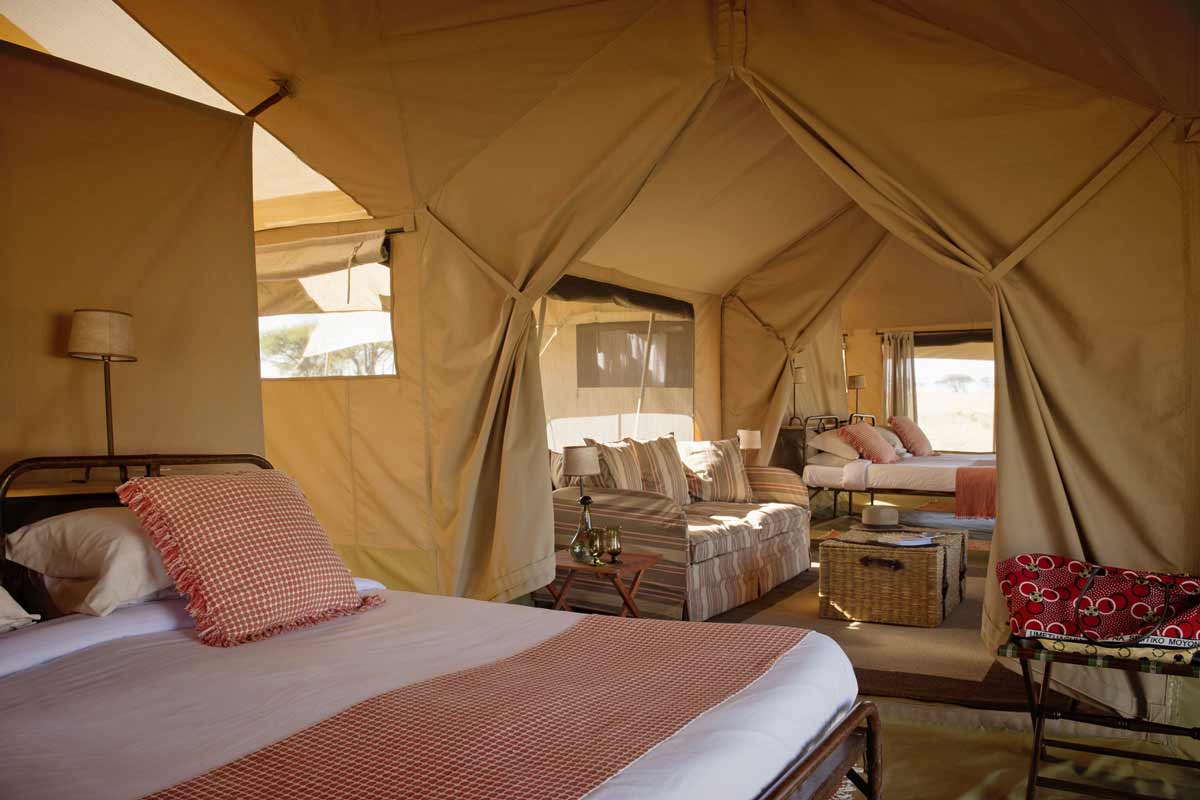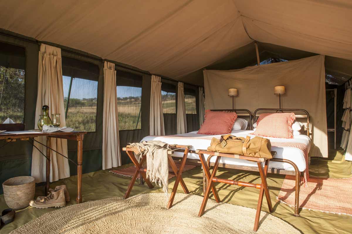 Le Serengeti Safari Camp ne compte que 6 tentes. Vastes, elles offrent tout le confort qu’un camp mobile de luxe peut offrir : terrasse avec deux fauteuils, coin bureau, lits confortables, grande salle de bains avec dressing et douche de brousse (un sac extérieur est rempli d’eau chaude en fin de journée).