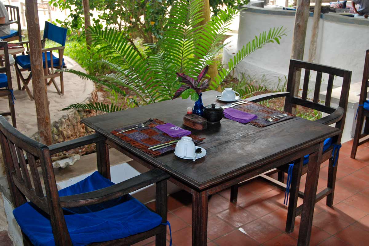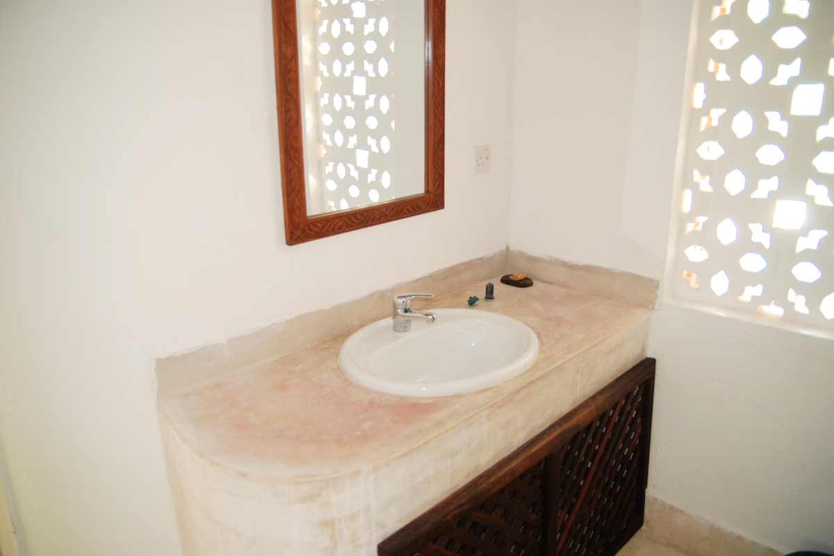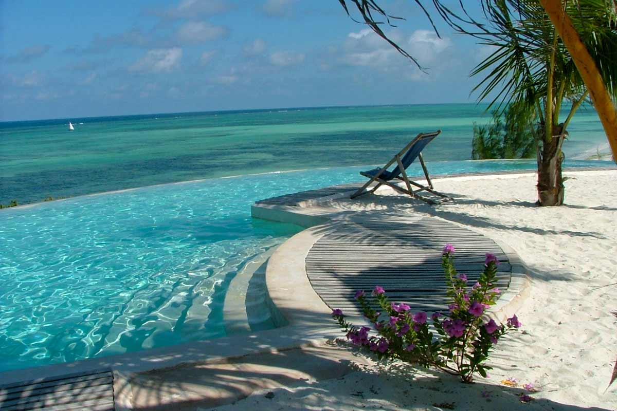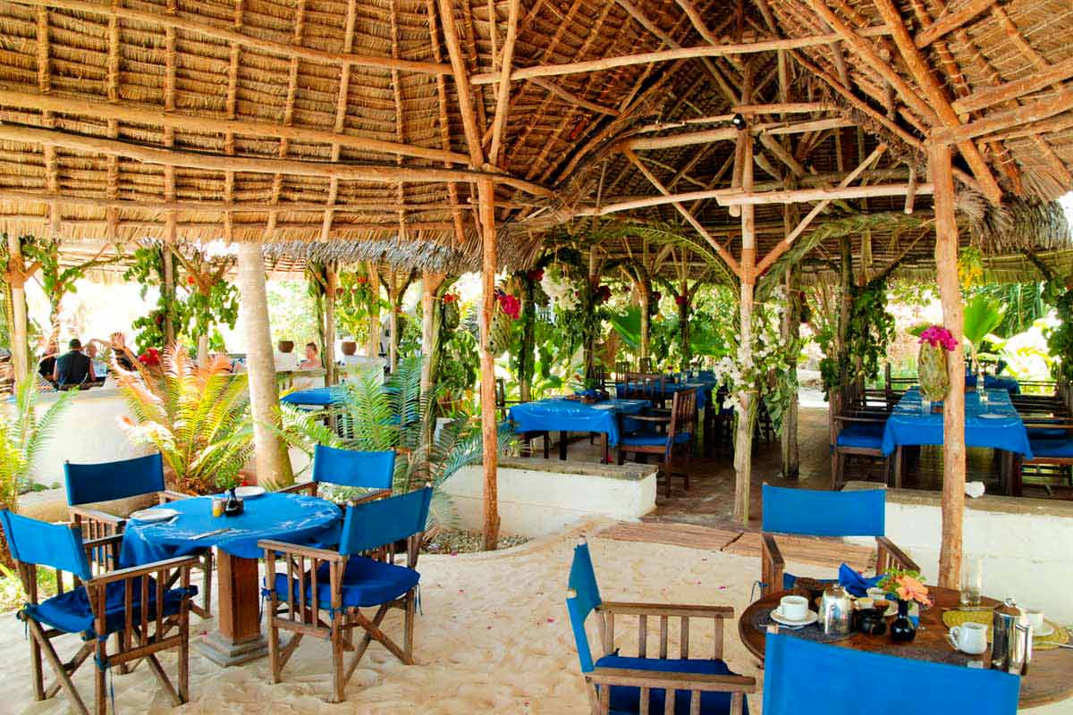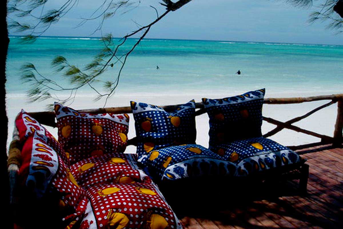 En contrebas, la plage est calme et fort belle. En revanche, comme presque partout à Zanzibar, le bain n’est pas possible à marée basse, d’autant qu’il y a beaucoup de corail devant l’hôtel. Il est toutefois possible de marcher un peu vers la droite, sur la plage, pour trouver un peu de sable. Mais, dans tous les cas, il n’y a presque plus d’eau à marée basse, comme presque partout sur l’île…