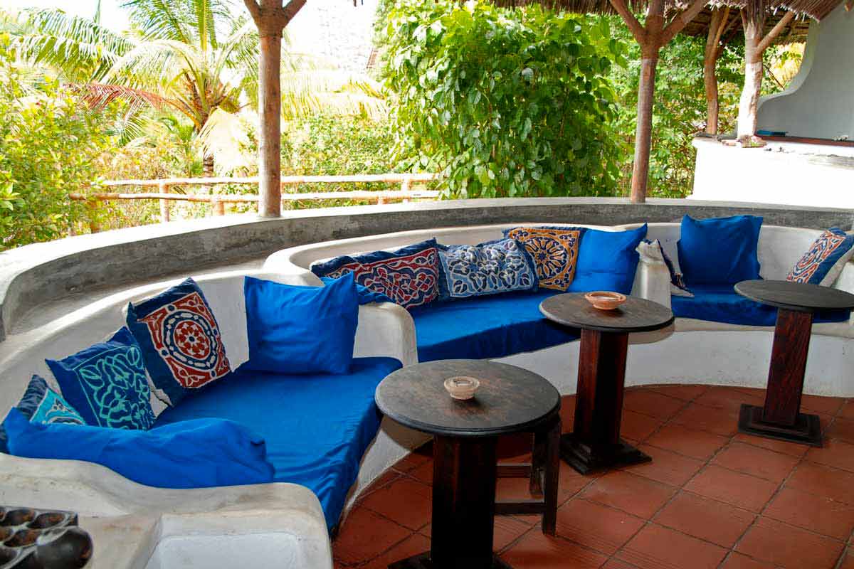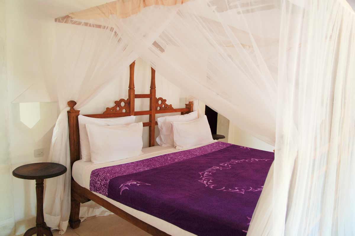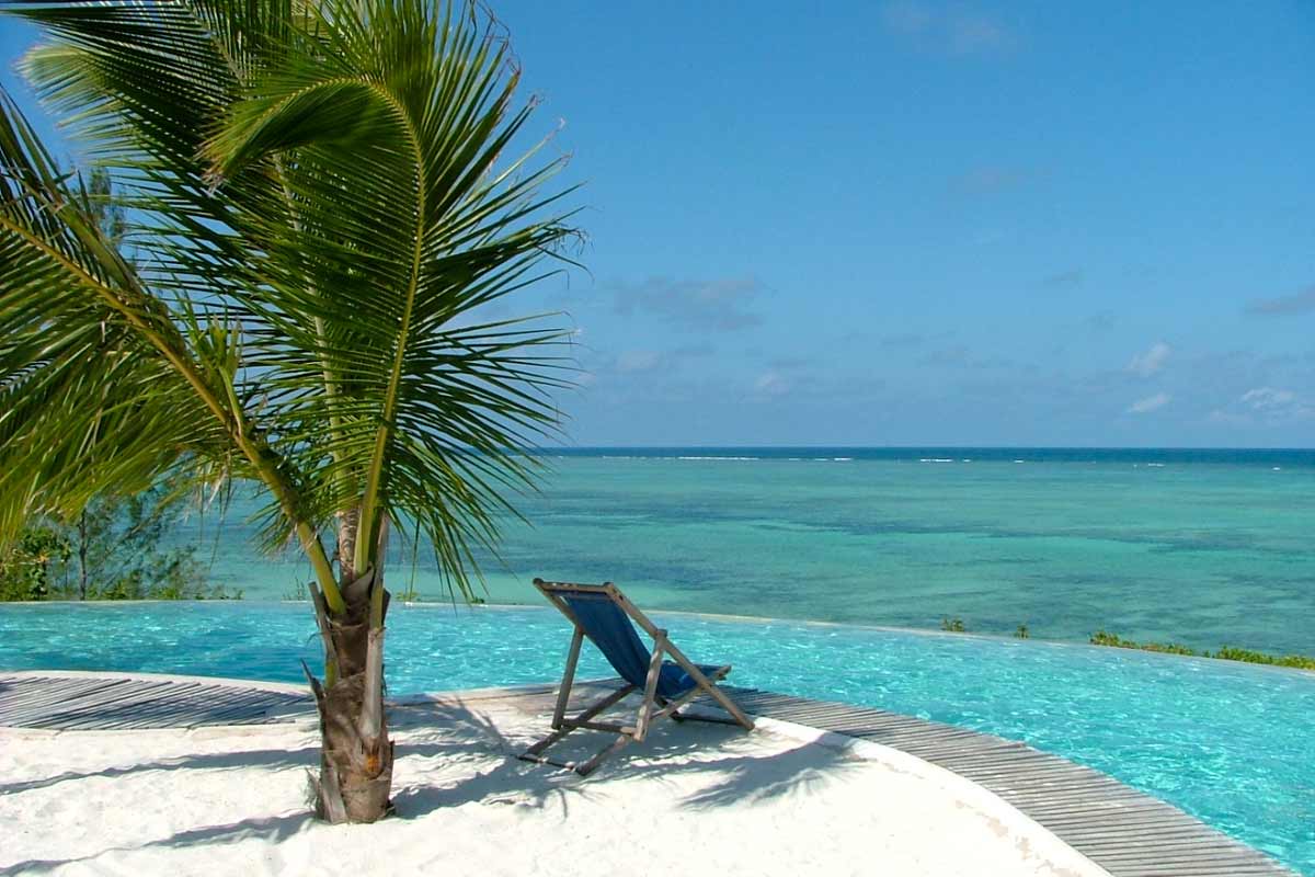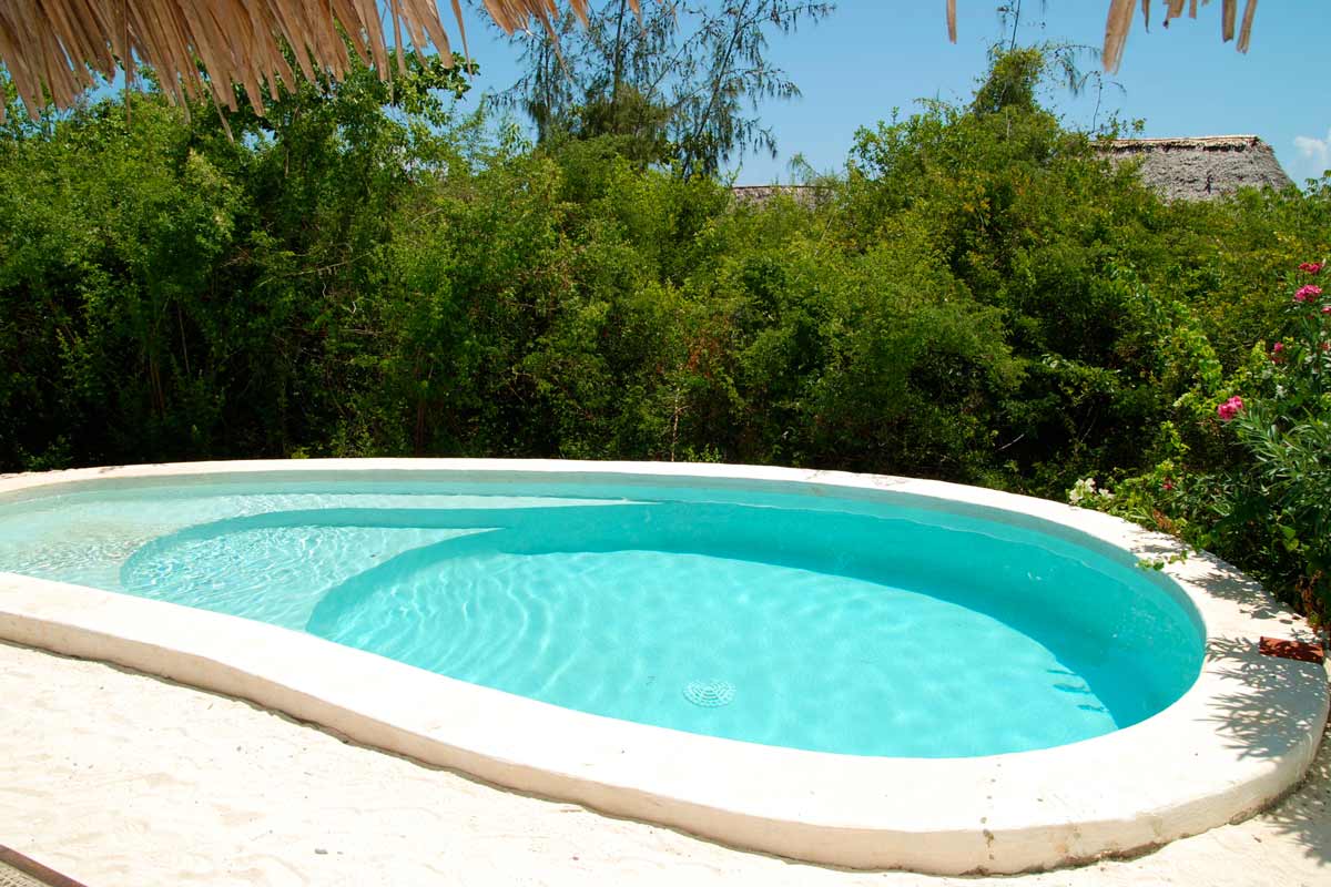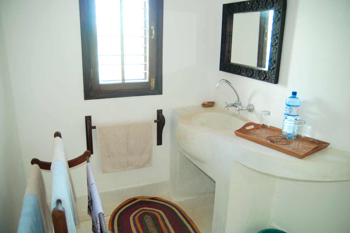 En contrebas, la plage est calme et fort belle. En revanche, comme presque partout à Zanzibar, le bain n’est pas possible à marée basse, d’autant qu’il y a beaucoup de corail devant l’hôtel. Il est toutefois possible de marcher un peu vers la droite, sur la plage, pour trouver un peu de sable. Mais, dans tous les cas, il n’y a presque plus d’eau à marée basse, comme presque partout sur l’île…