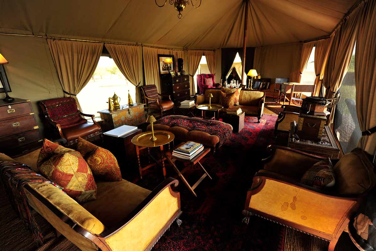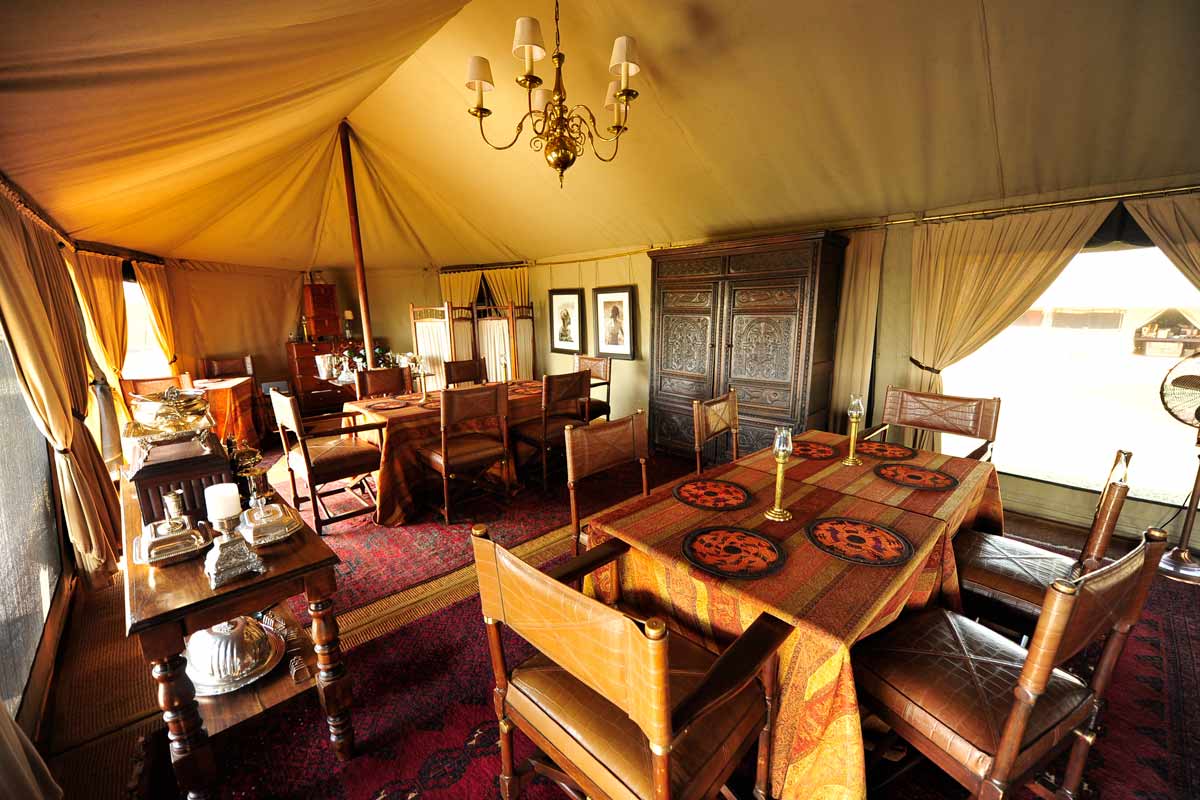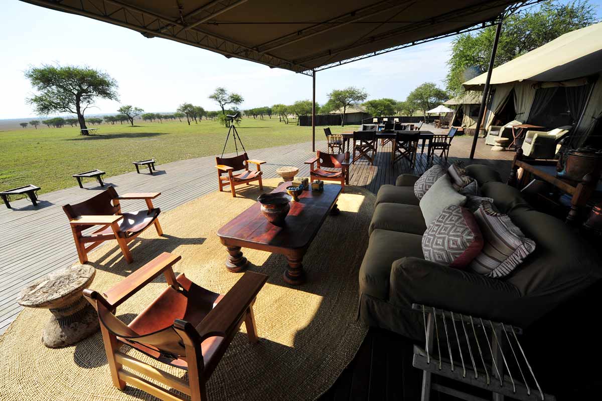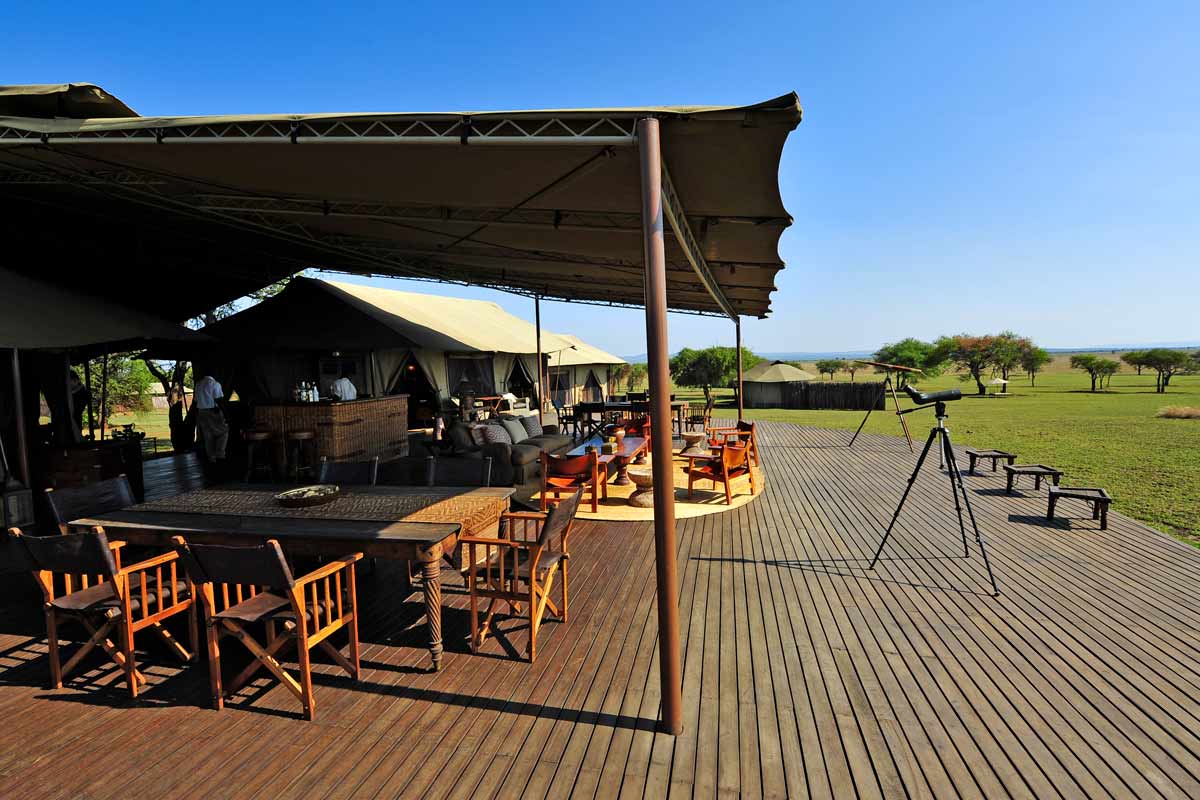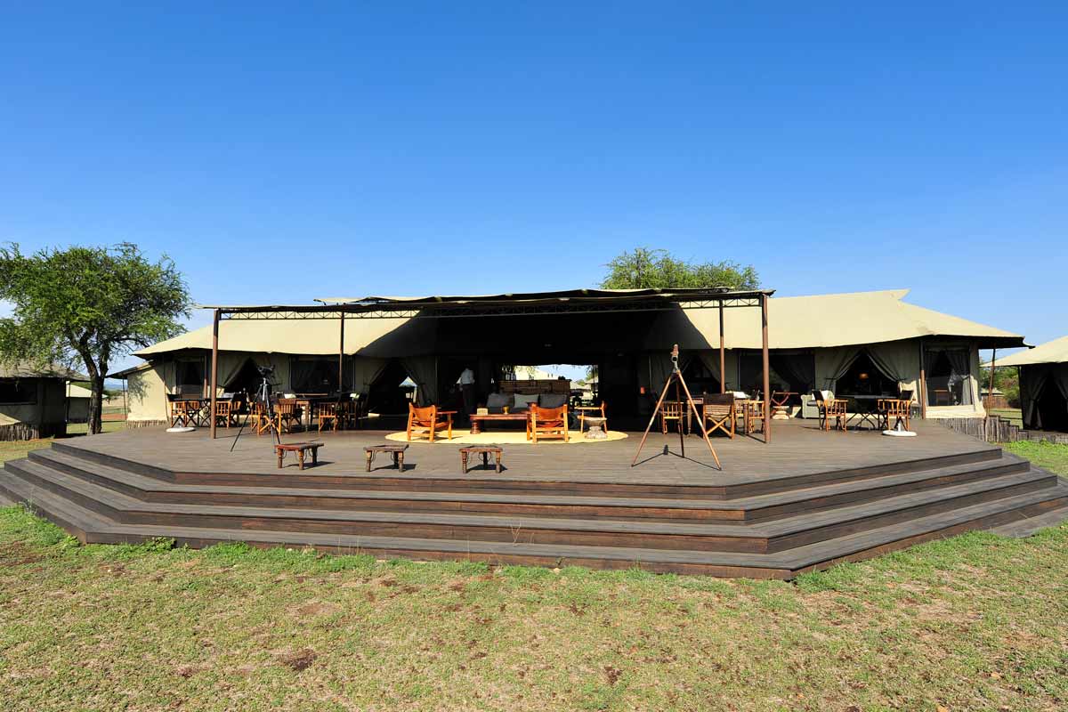 Les parties communes se dressent sous de vastes tentes qui font face à la savane qui s’étend à perte de vue.