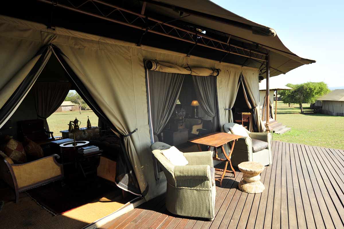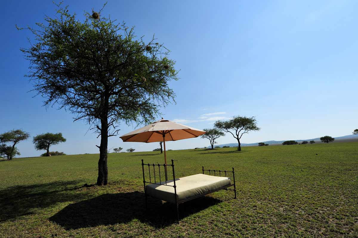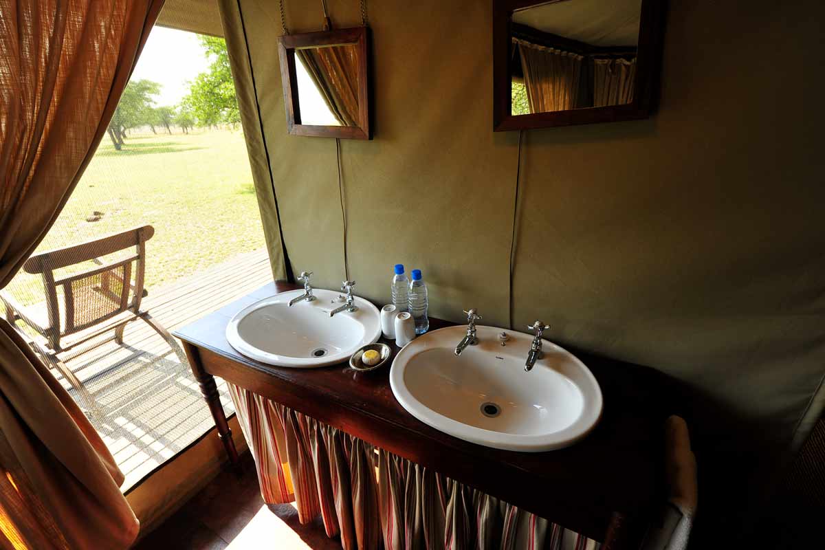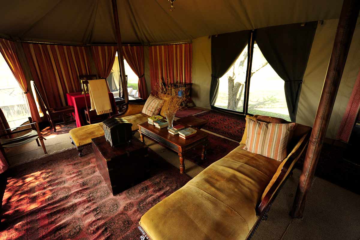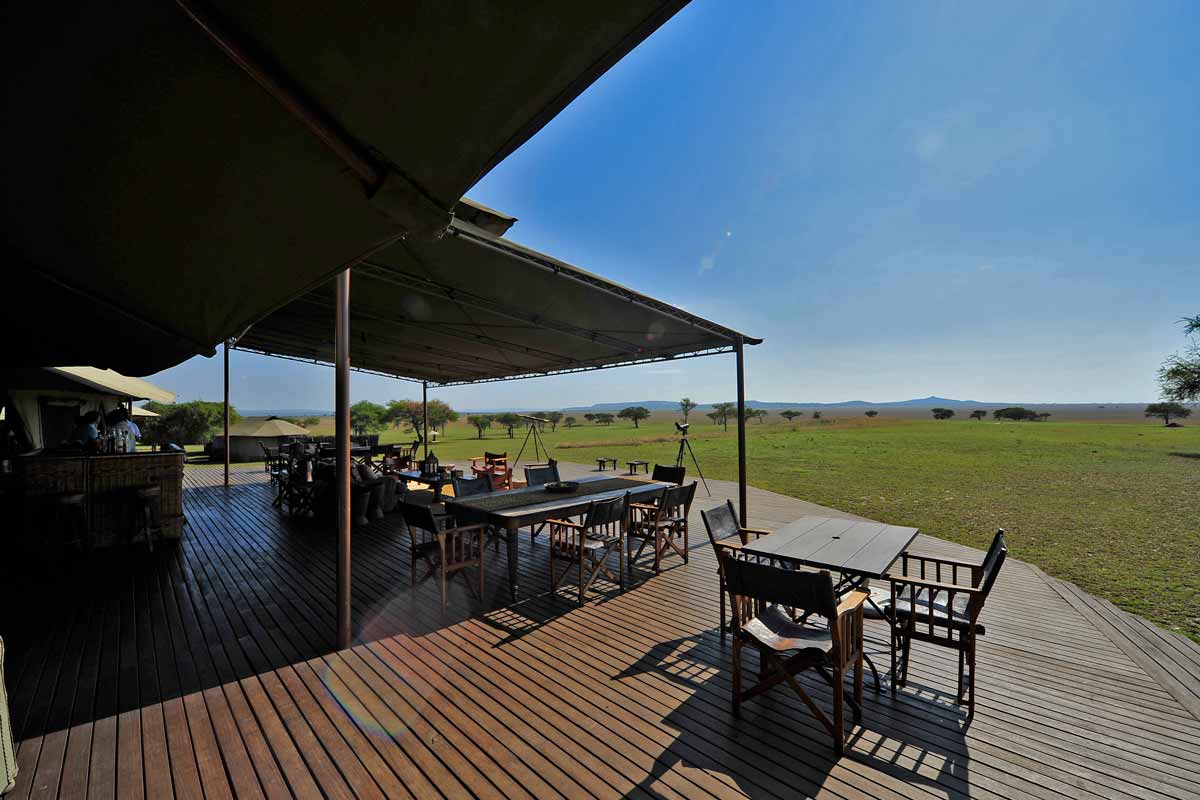 Les parties communes se dressent sous de vastes tentes qui font face à la savane qui s’étend à perte de vue.
