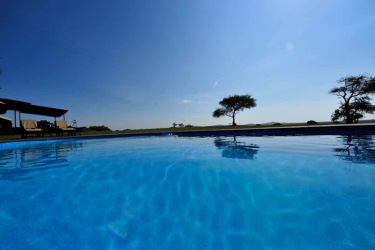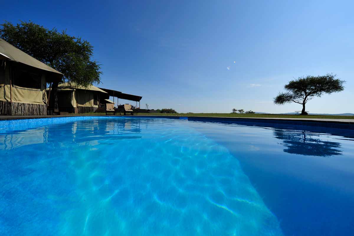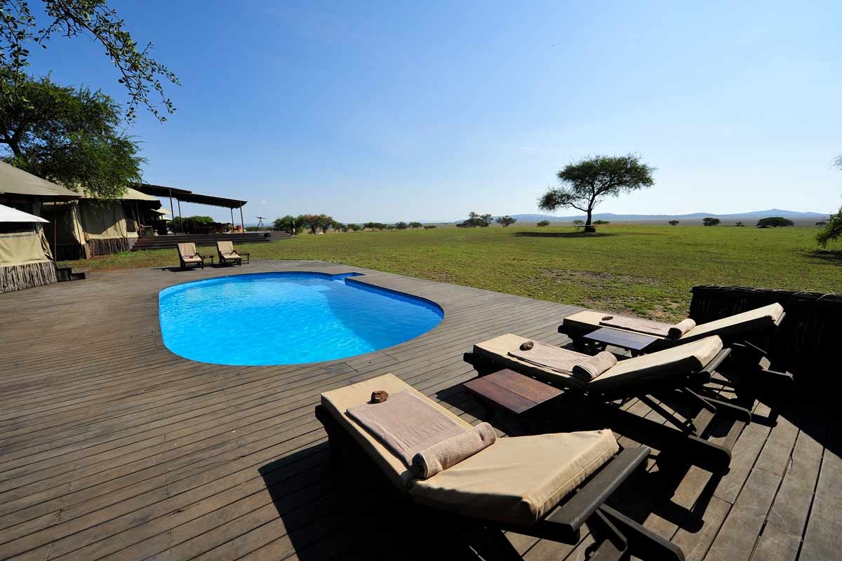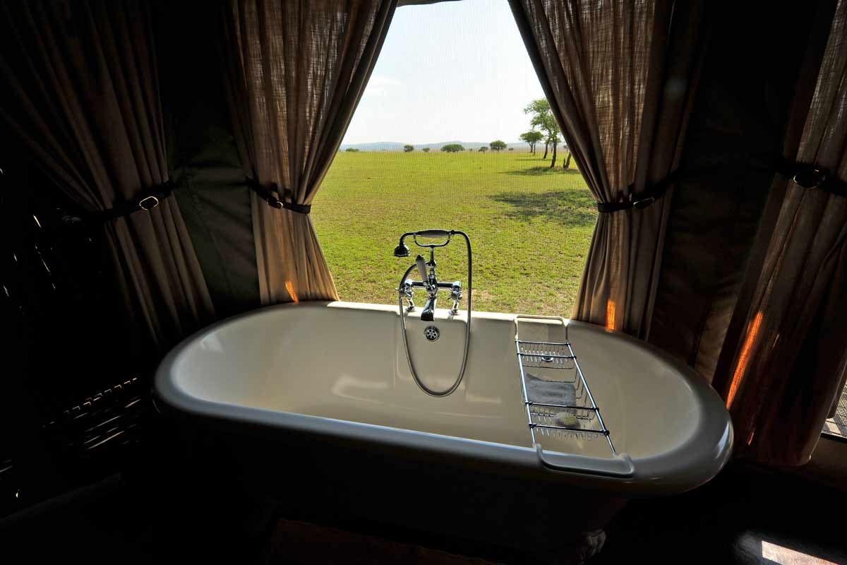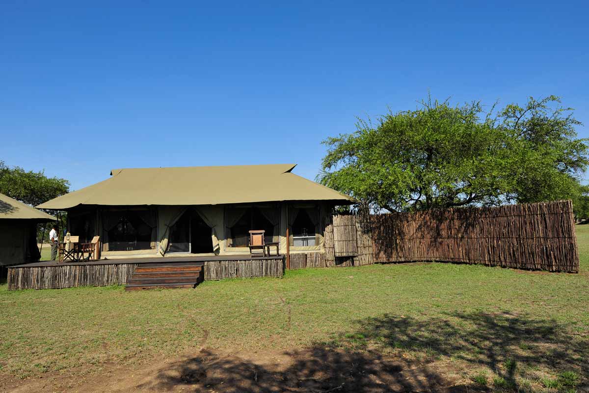 Les parties communes se dressent sous de vastes tentes qui font face à la savane qui s’étend à perte de vue.