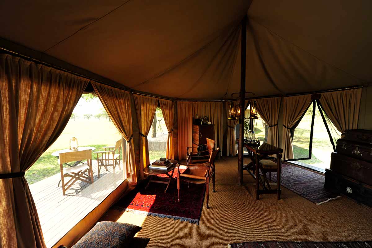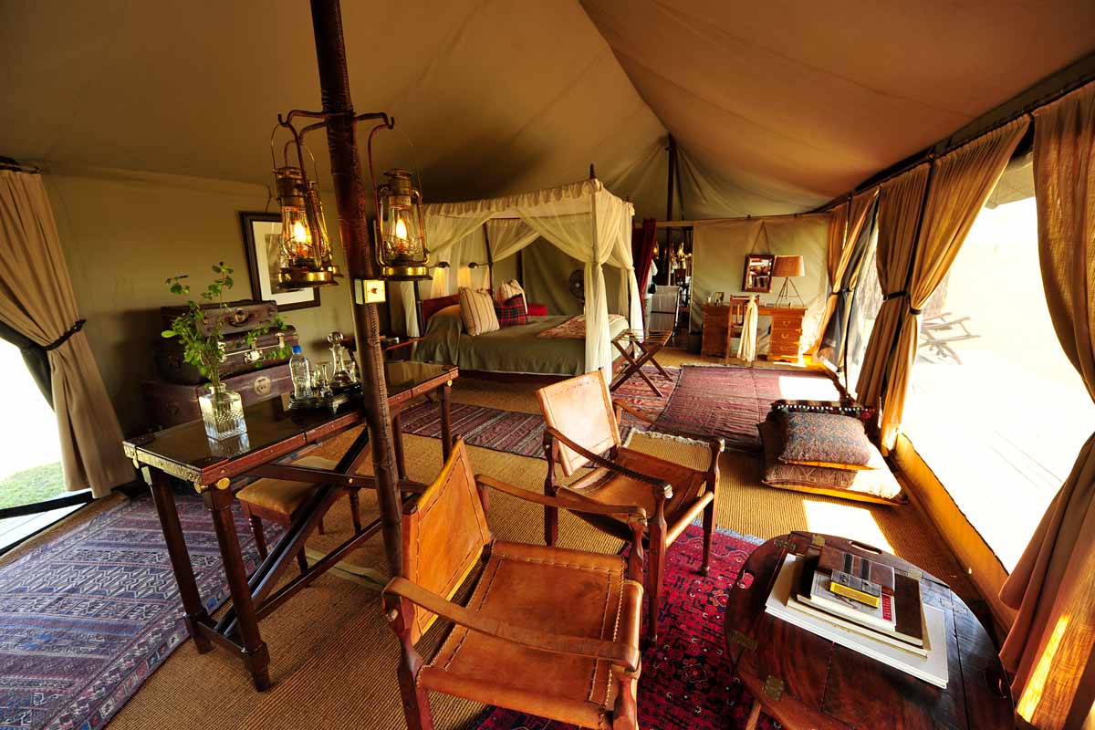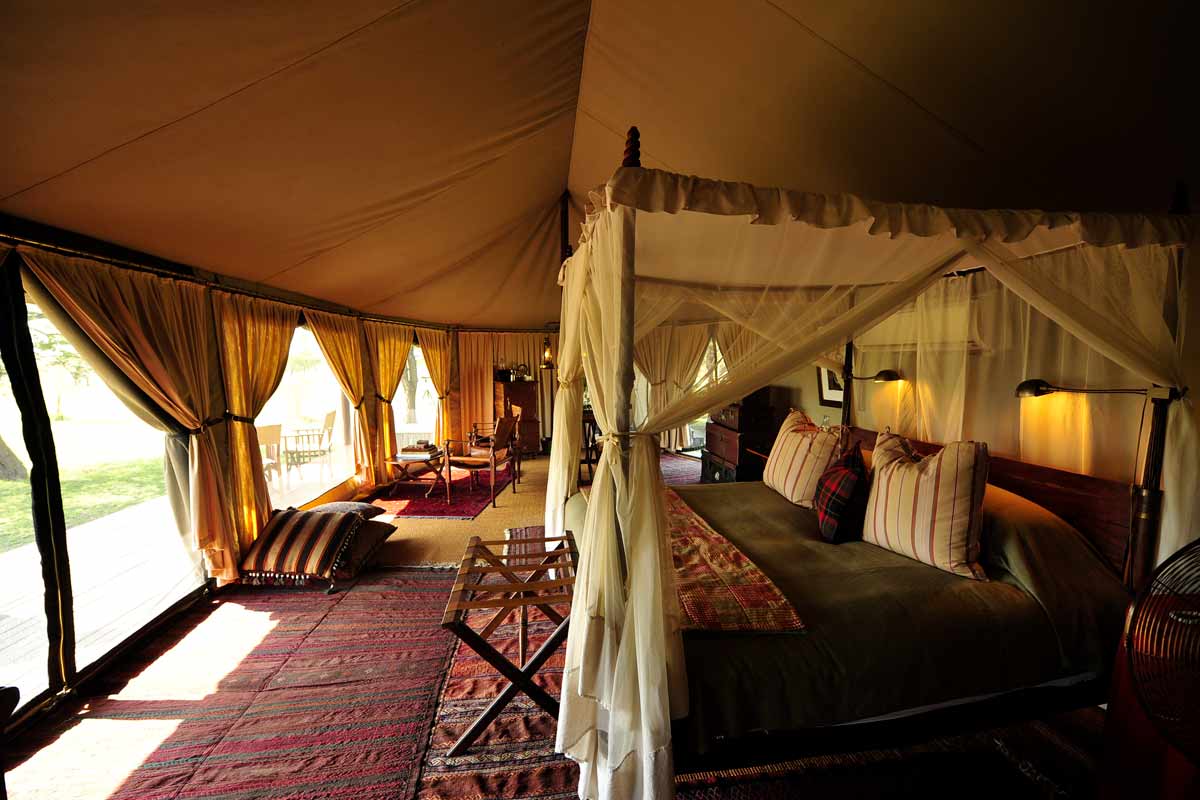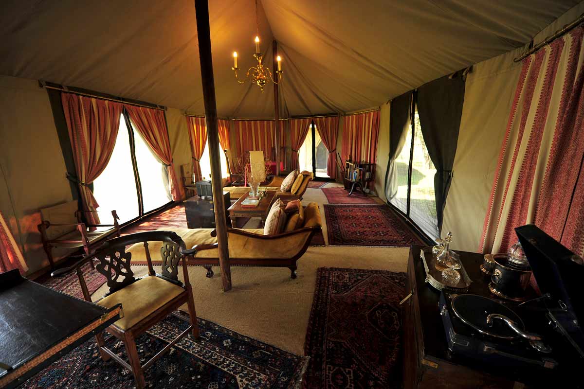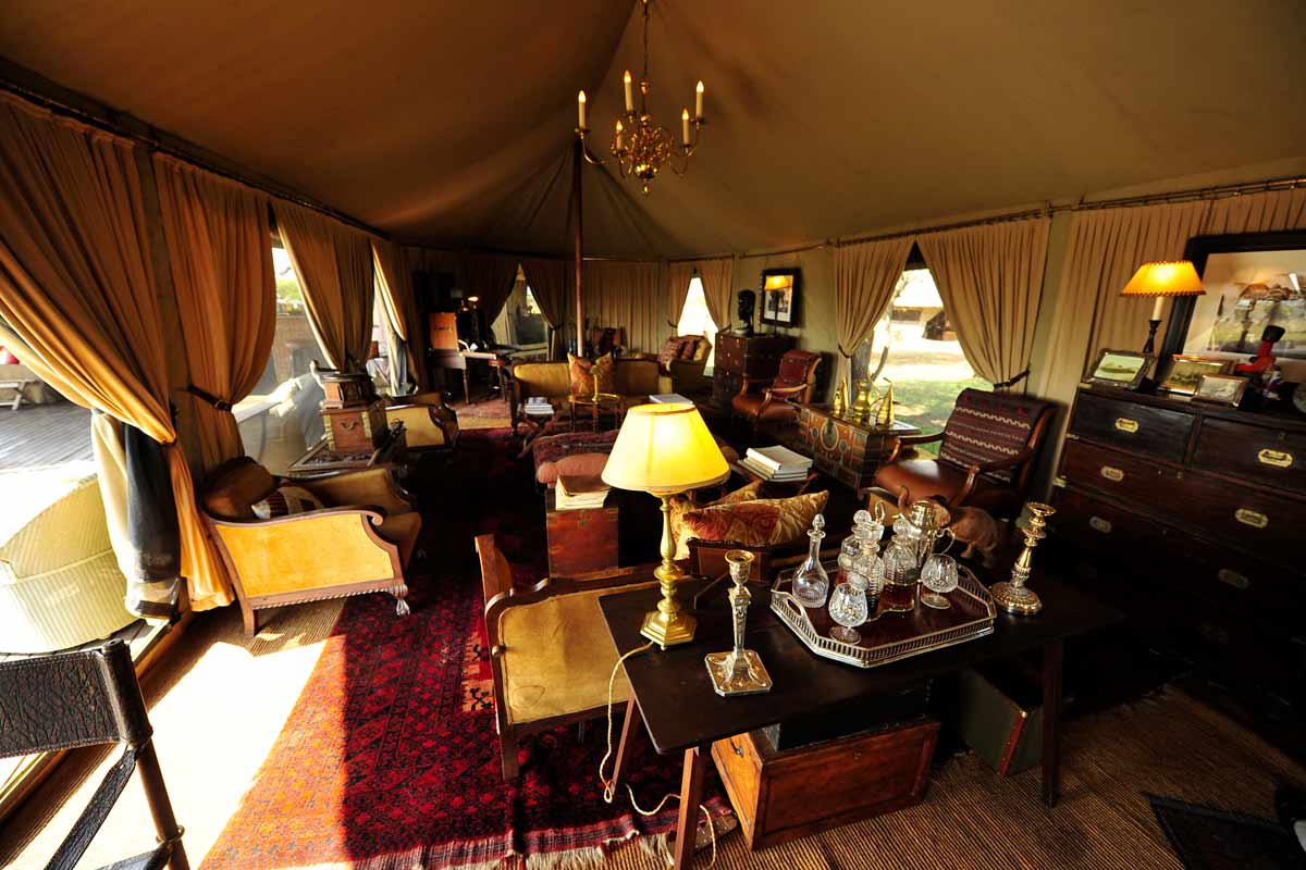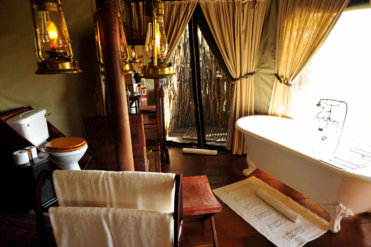 SINGITA SABORA TENTED CAMP ne propose que 9 tentes climatisées au style « out of Africa » classique et enchanteur. L’ambiance 1920 des premières expéditions : vieux meubles, couvertures masaïs, tapis perses…
