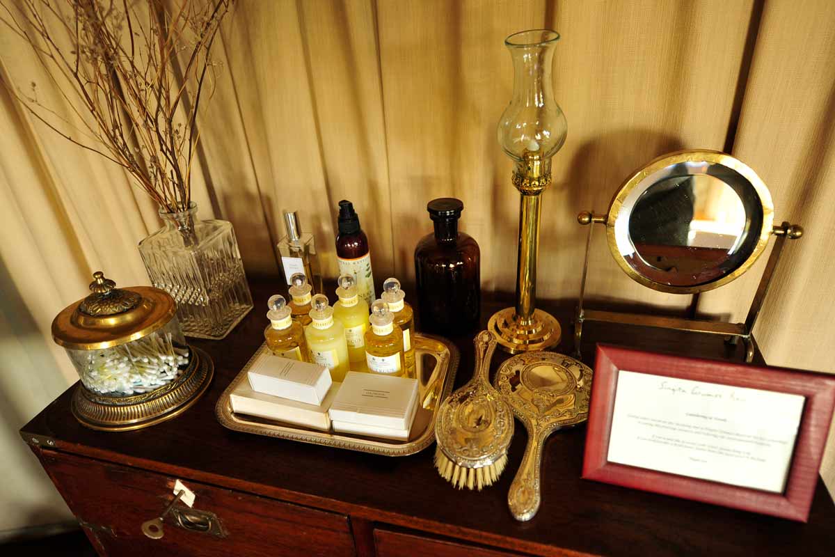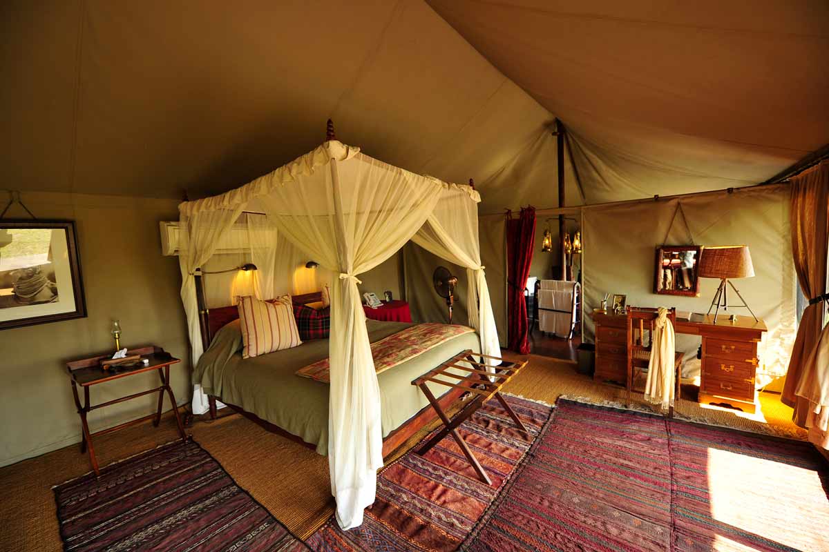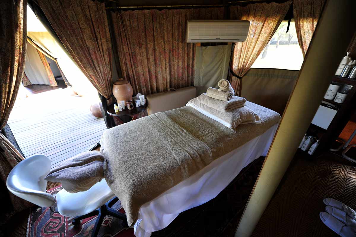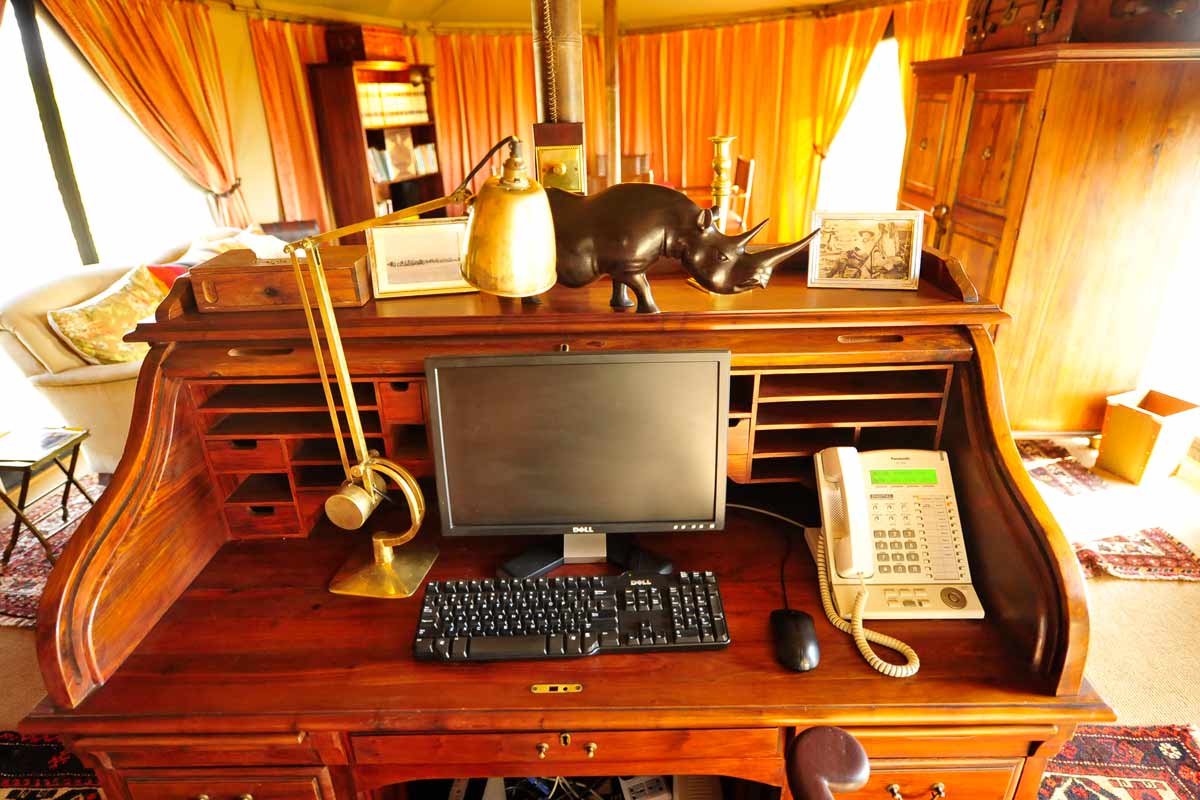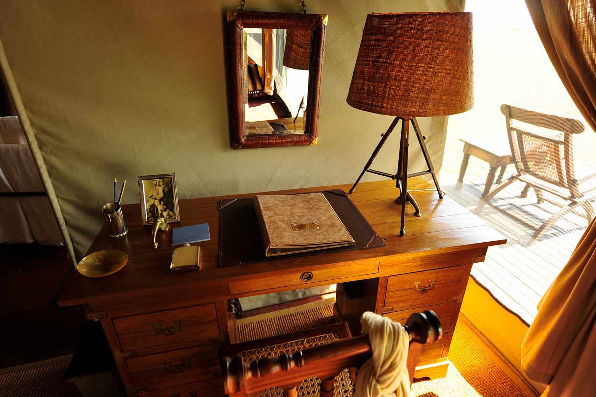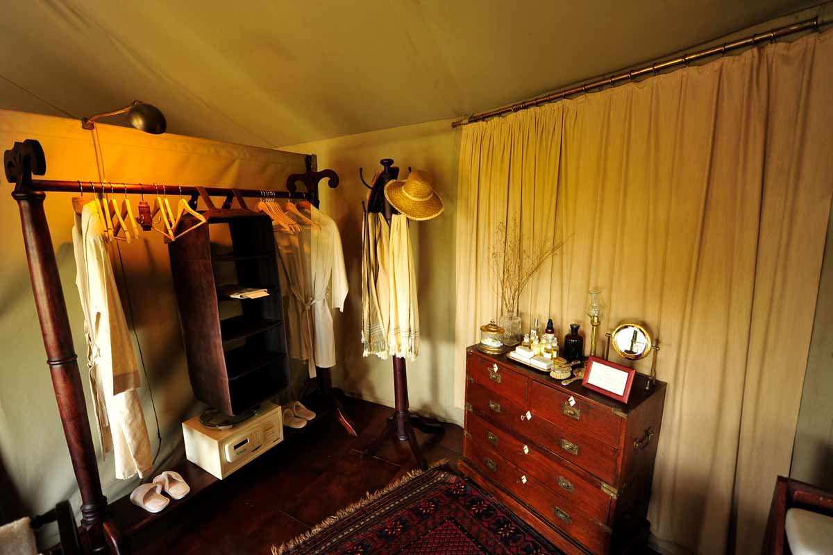 Le luxe proposé est exceptionnel pour un camp de tentes : climatisation, ventilateur, « day-bed » extérieur, coin bureau, télescope, téléphone, coffre-fort, sèche-cheveux, Wi-Fi…