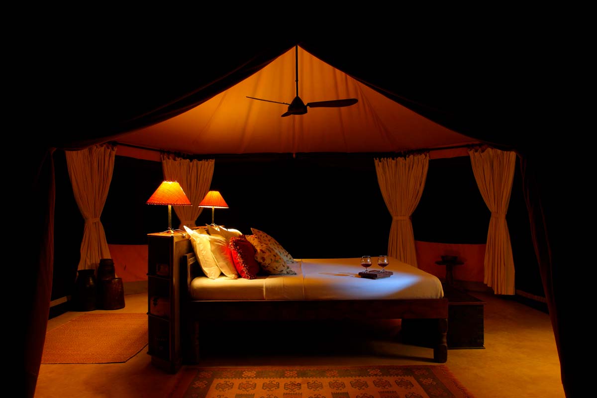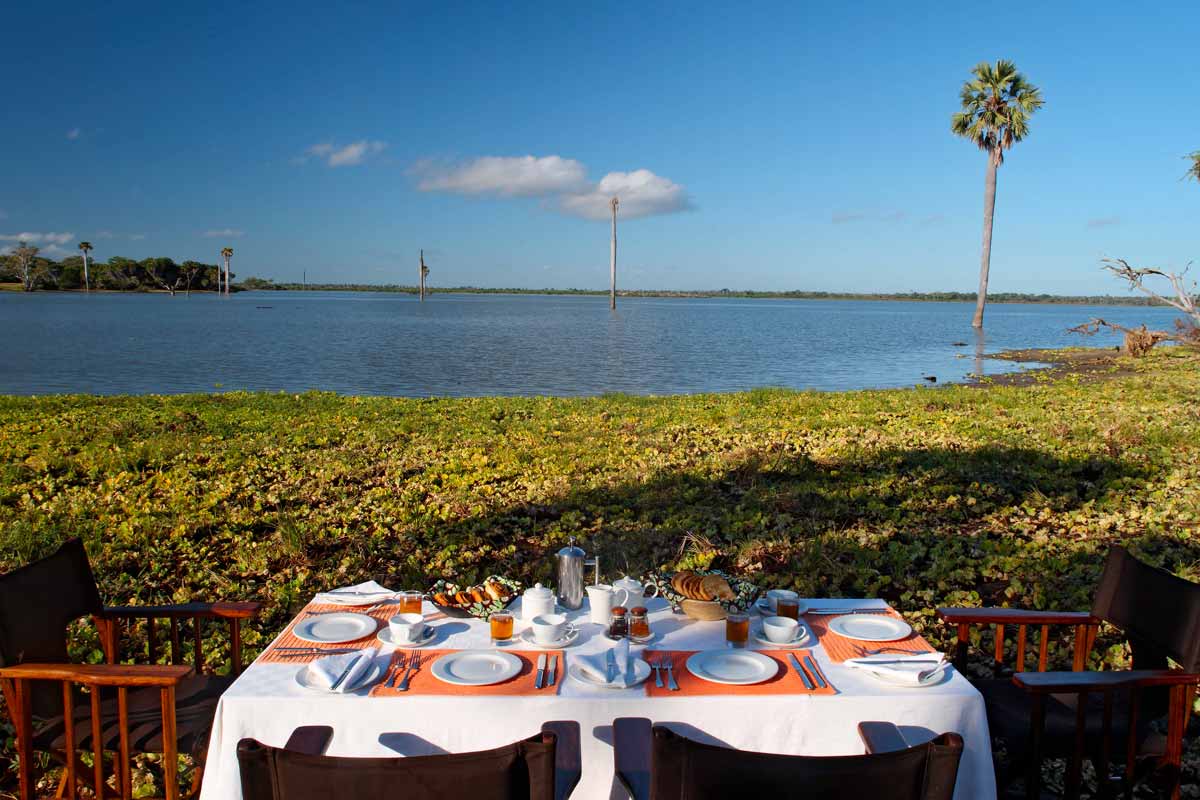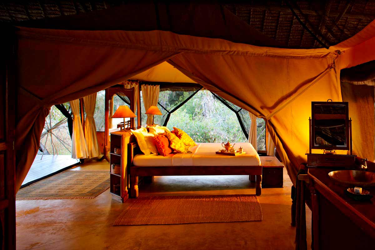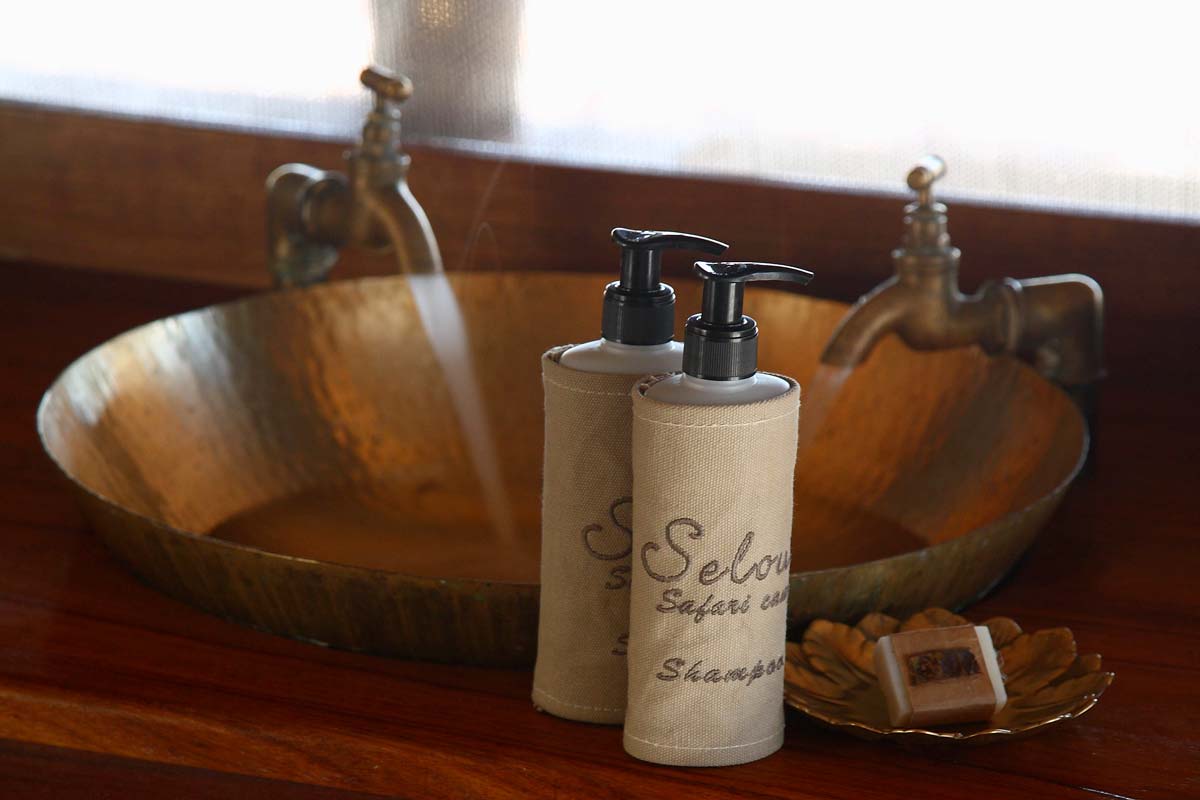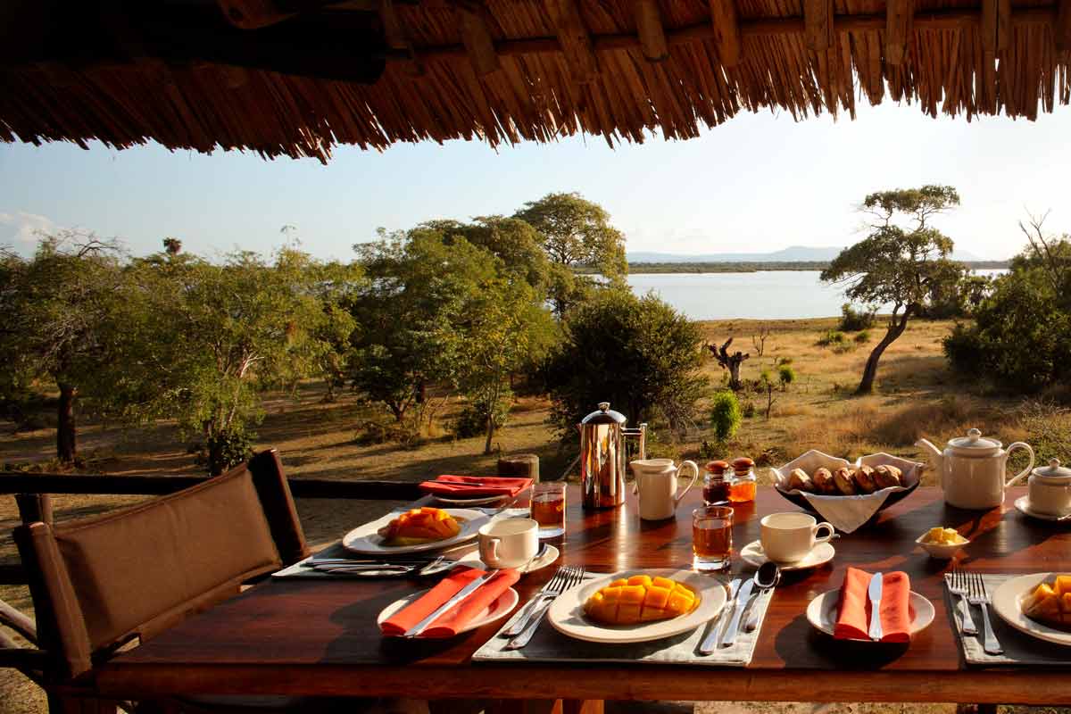 Les 13 tentes du SIWANDU (6 au North et 7 au South) se dressent sur des plateformes en bois, face au lac. Vastes, elles offrent un bon confort et une ambiance typique des safaris africains : ventilateur, grande terrasse avec canapé et fauteuils, salle de bains avec double vasque, immense douche extérieure…