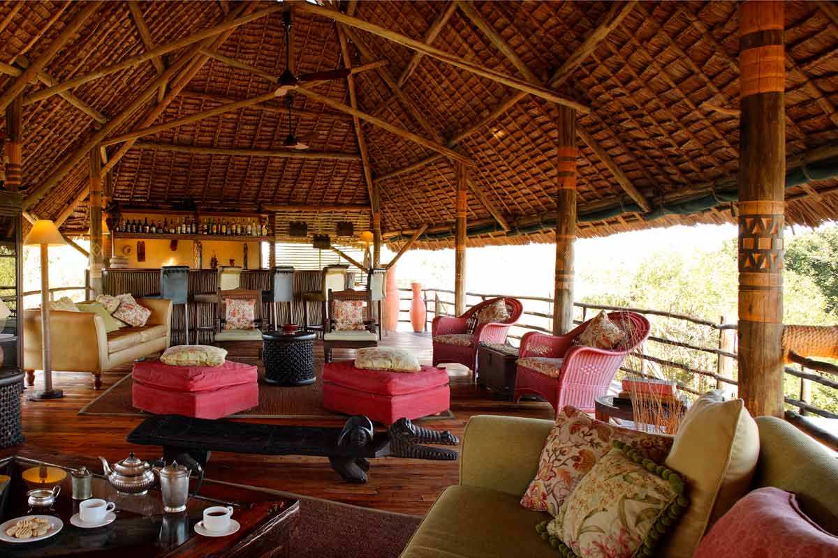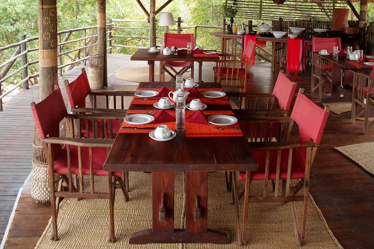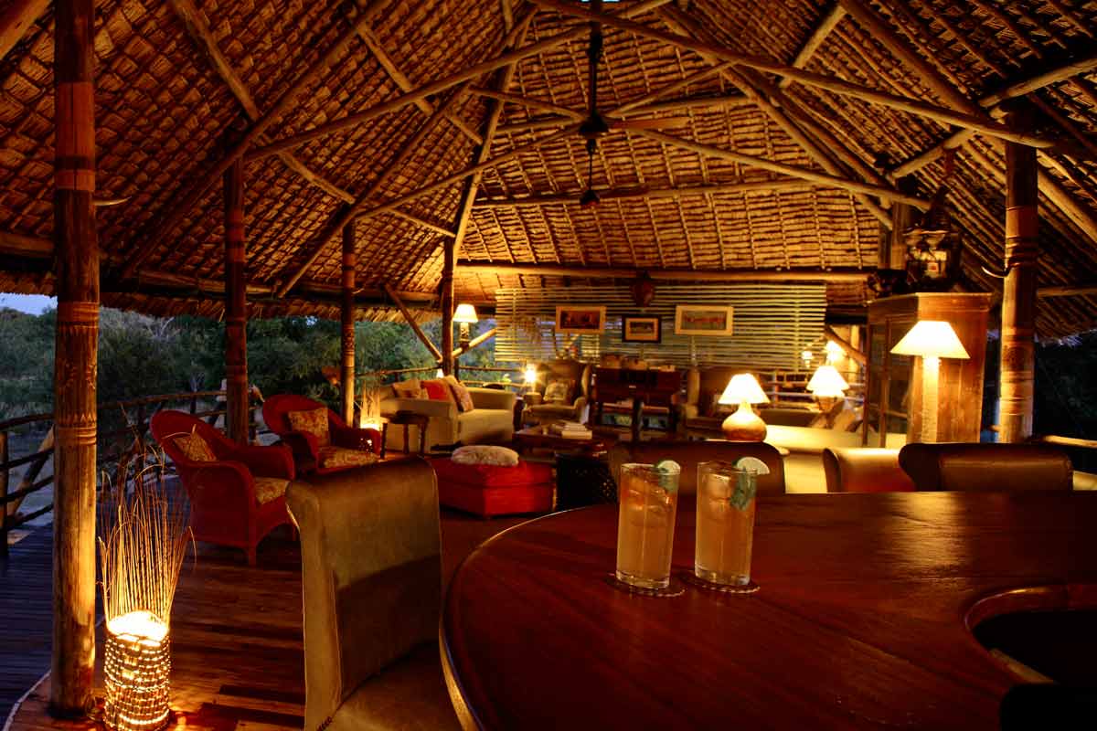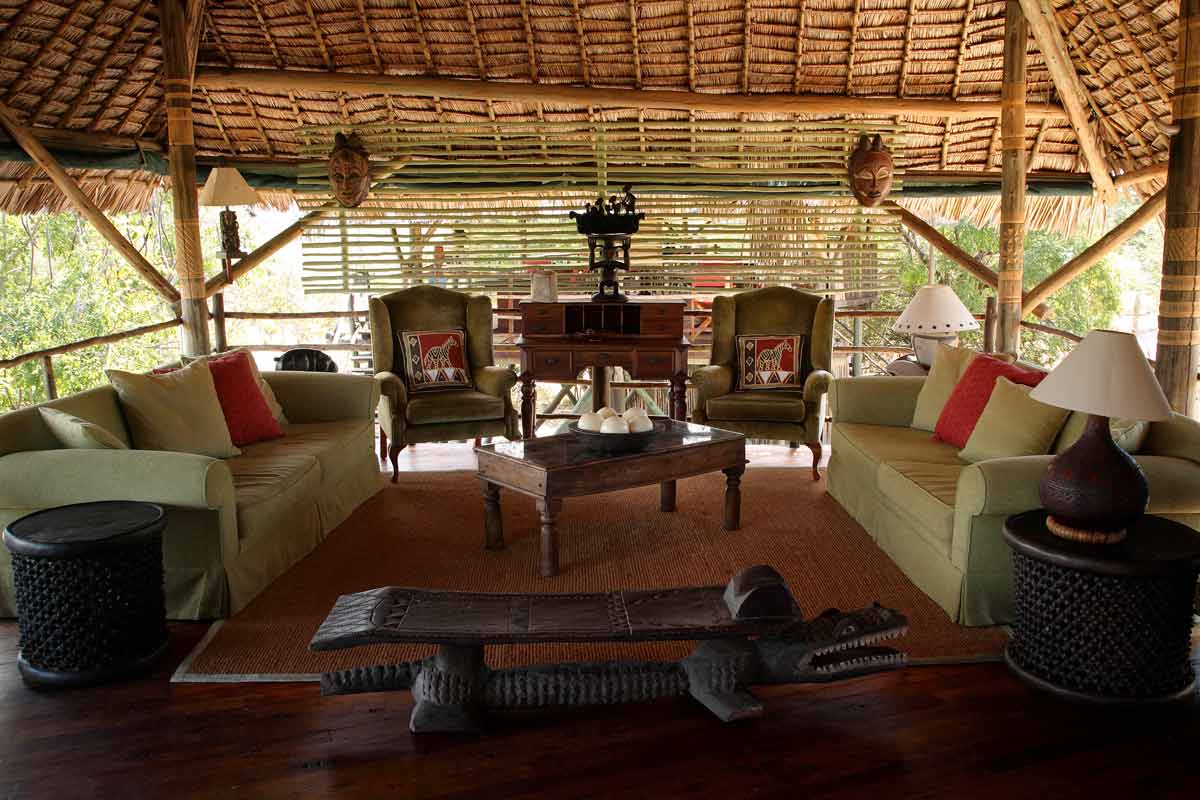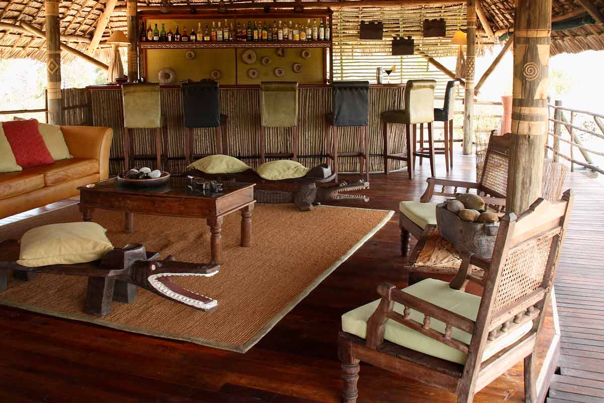 Celles-ci se dressent sur des plateformes de bois abritées par des toits de palme. Le salon et le bar d’un côté, le restaurant sur une autre plateforme. La décoration, les meubles et les tapis confèrent au SIWANDU une ambiance authentique peu fréquente dans les autres lodges.