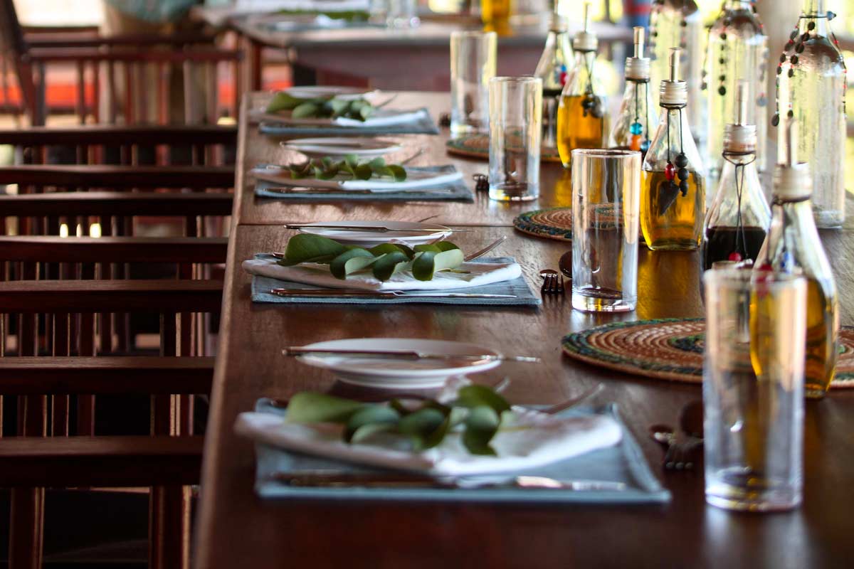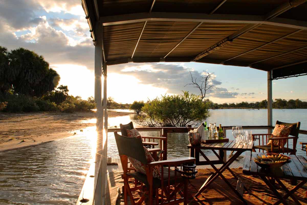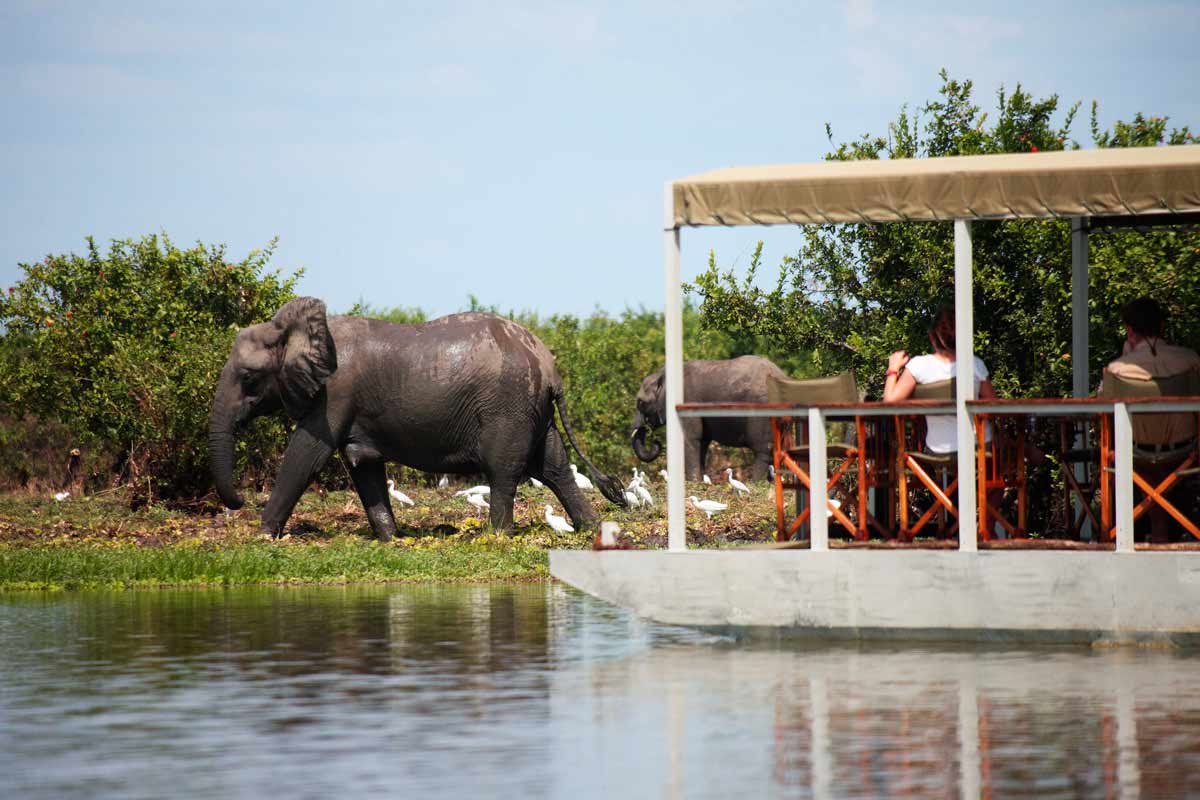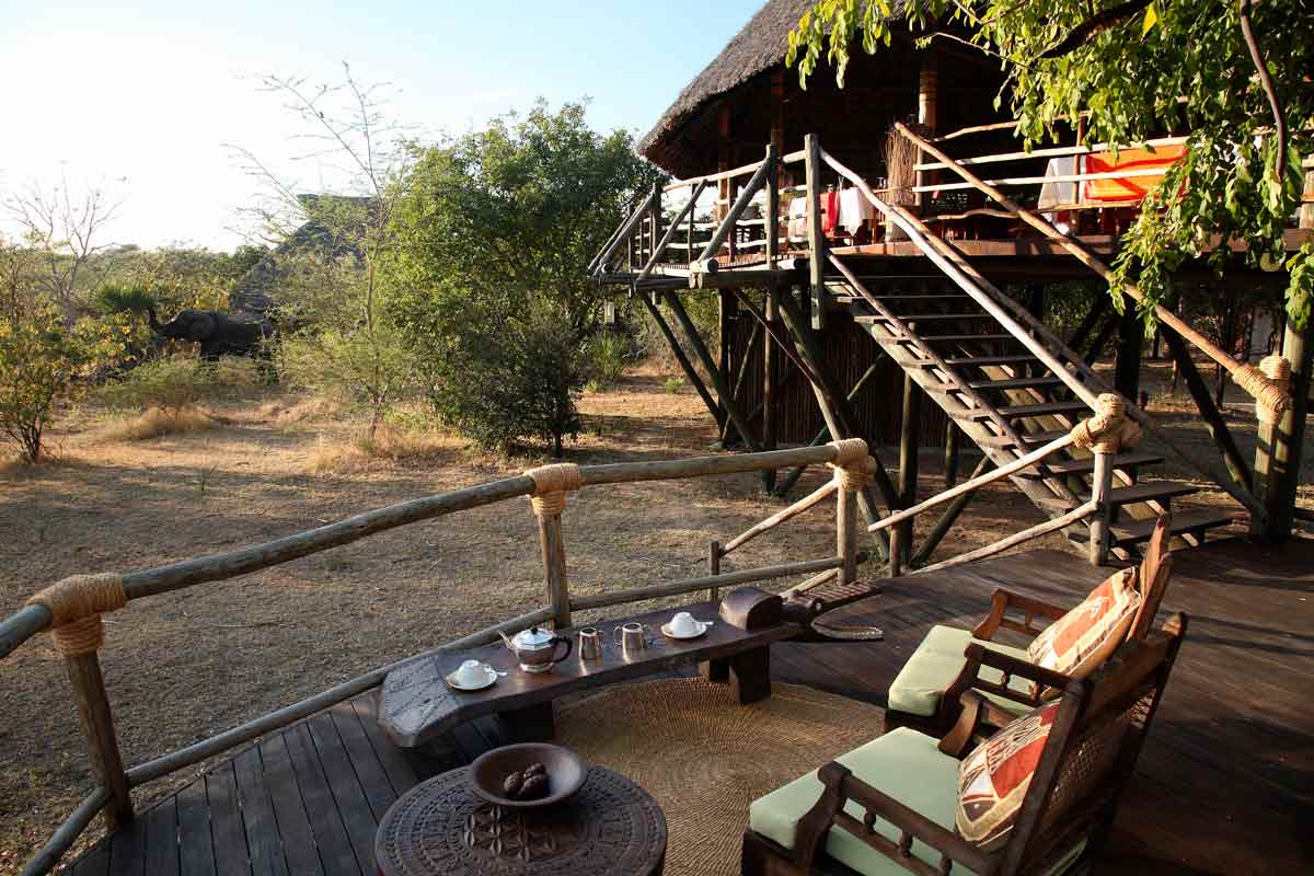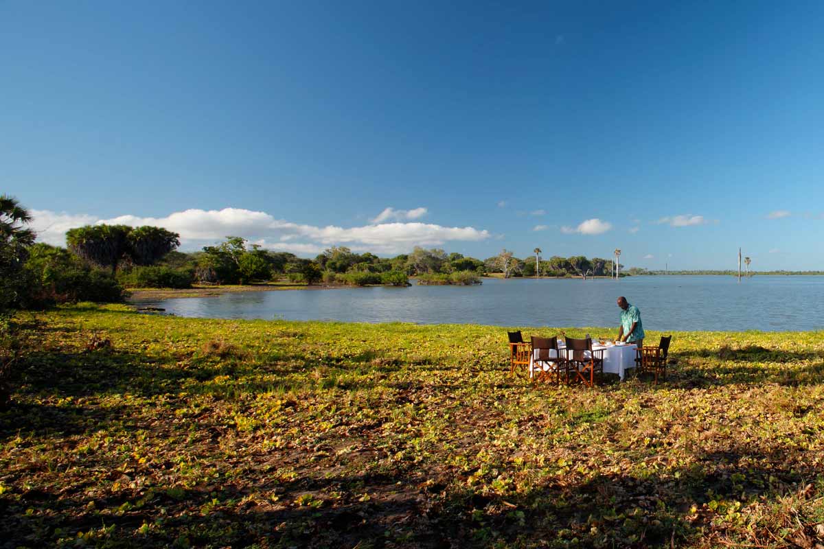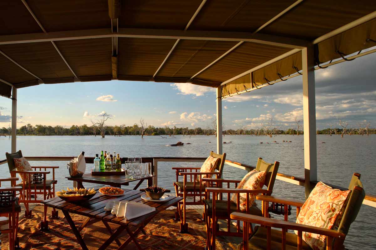 Celles-ci se dressent sur des plateformes de bois abritées par des toits de palme. Le salon et le bar d’un côté, le restaurant sur une autre plateforme. La décoration, les meubles et les tapis confèrent au SIWANDU une ambiance authentique peu fréquente dans les autres lodges.