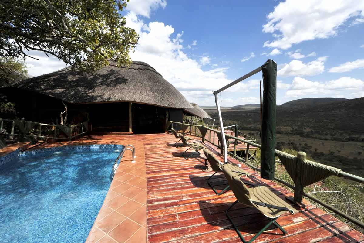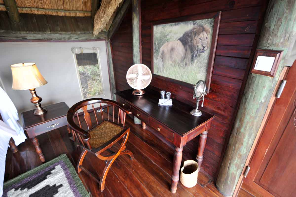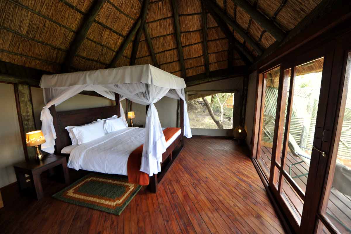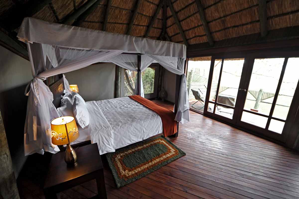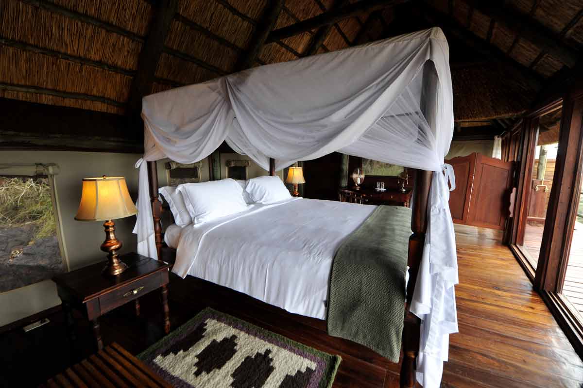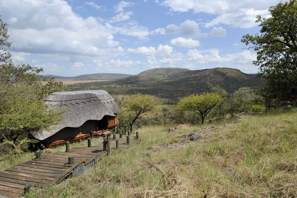 Le lodge est situé à une trentaine de minutes de la piste principale, au bout d’une piste peu fréquentée qui permet des safaris au calme.