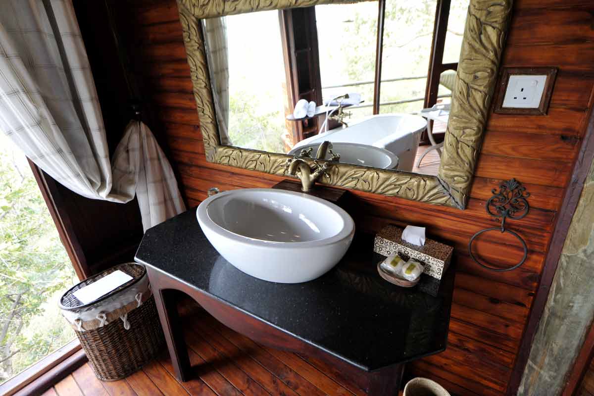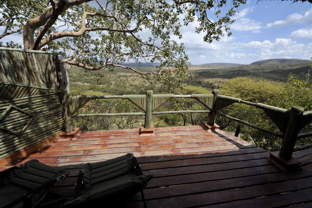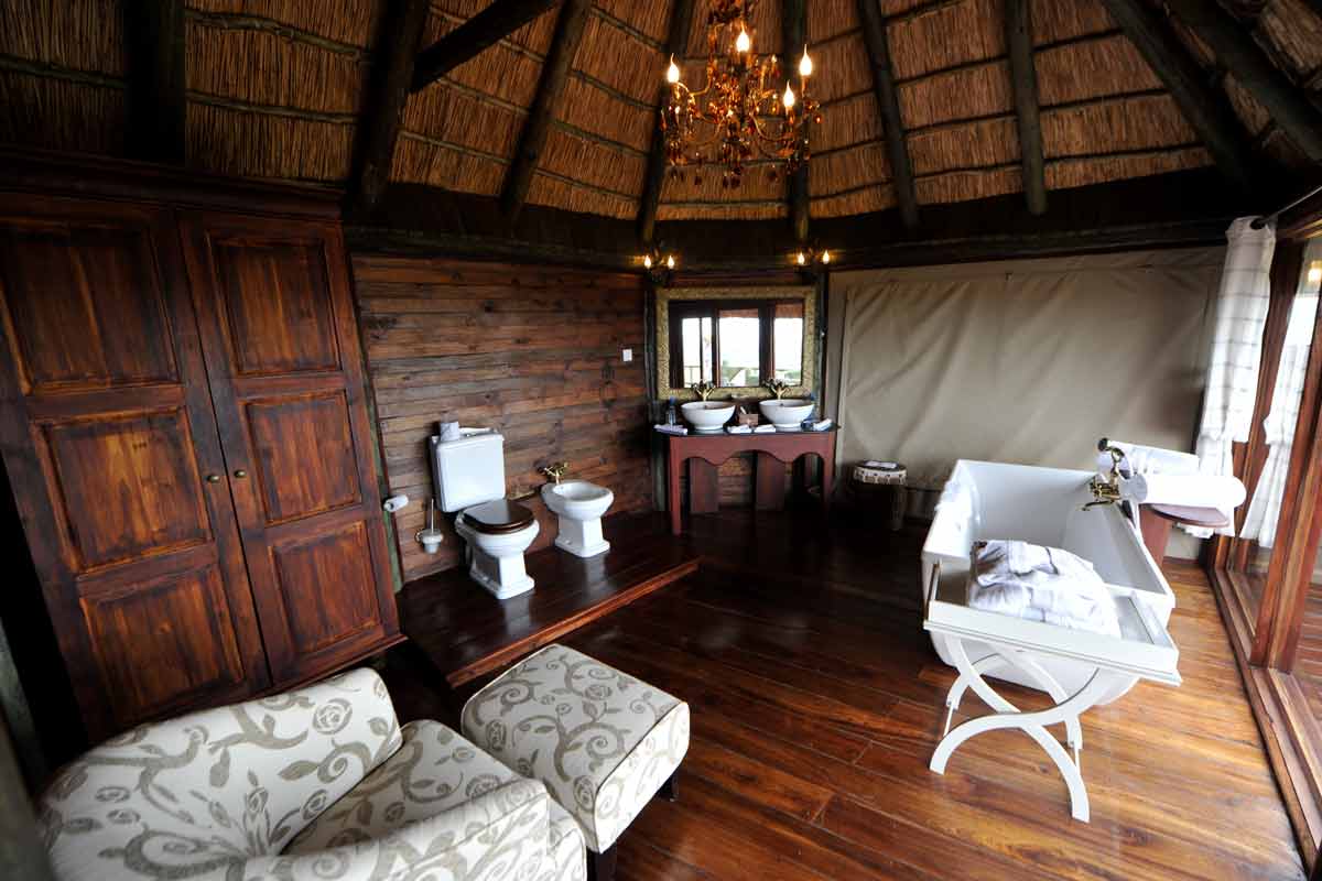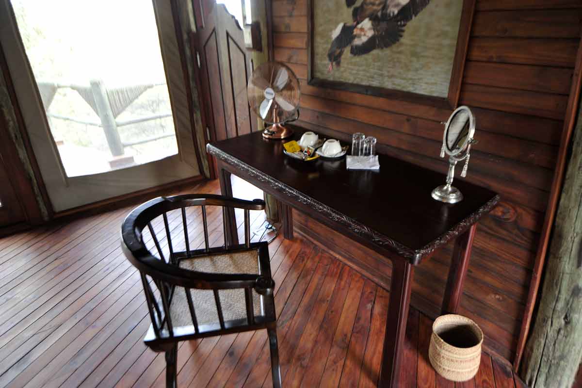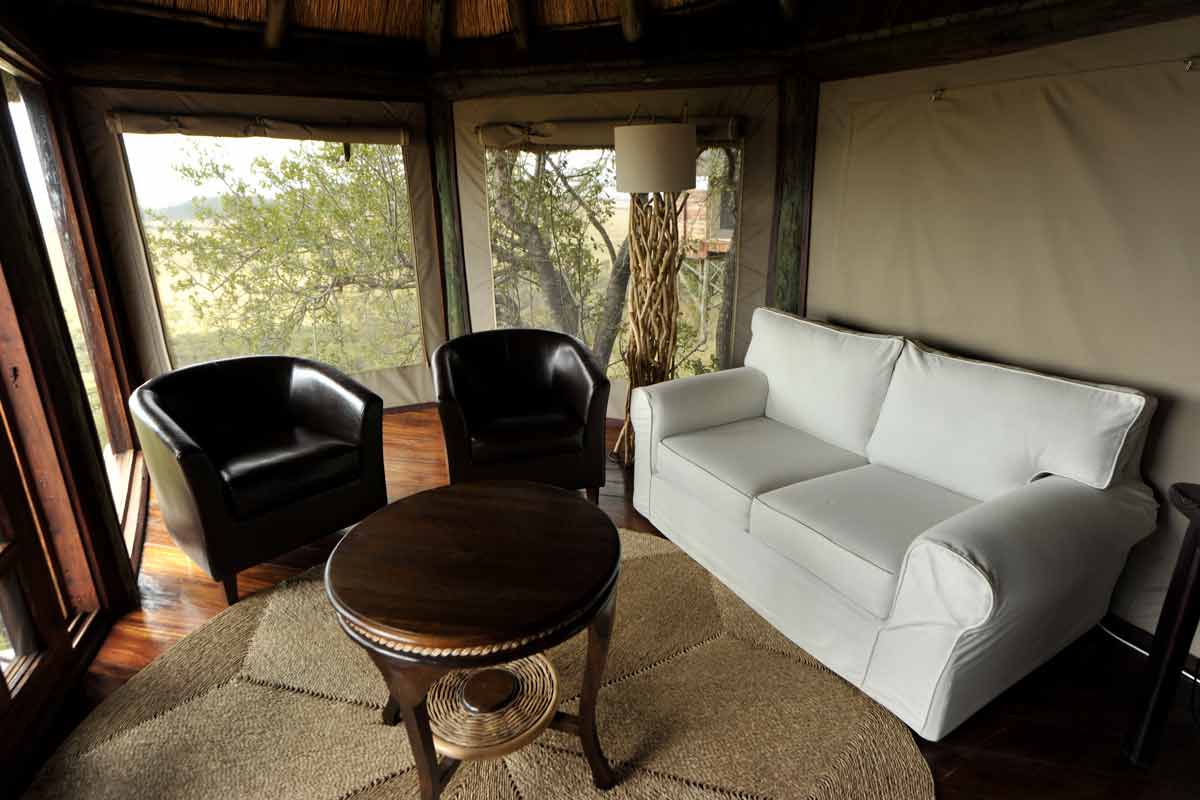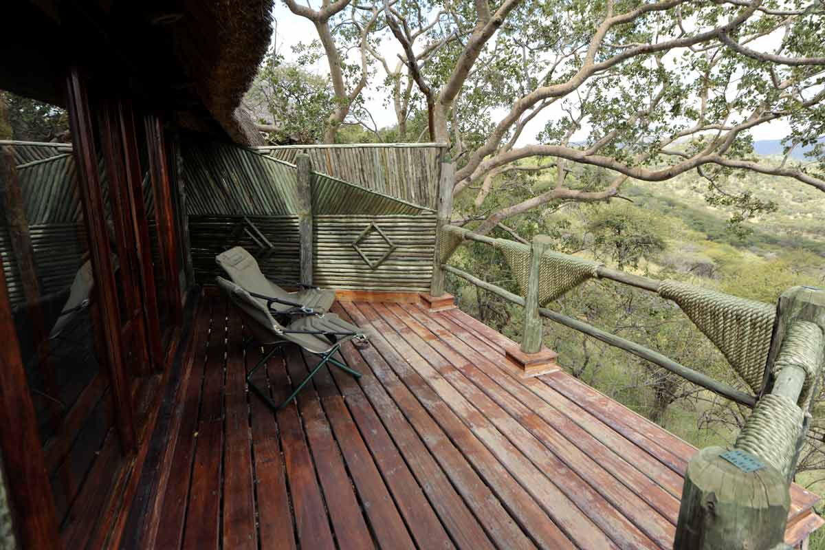 Le lodge est situé à une trentaine de minutes de la piste principale, au bout d’une piste peu fréquentée qui permet des safaris au calme.