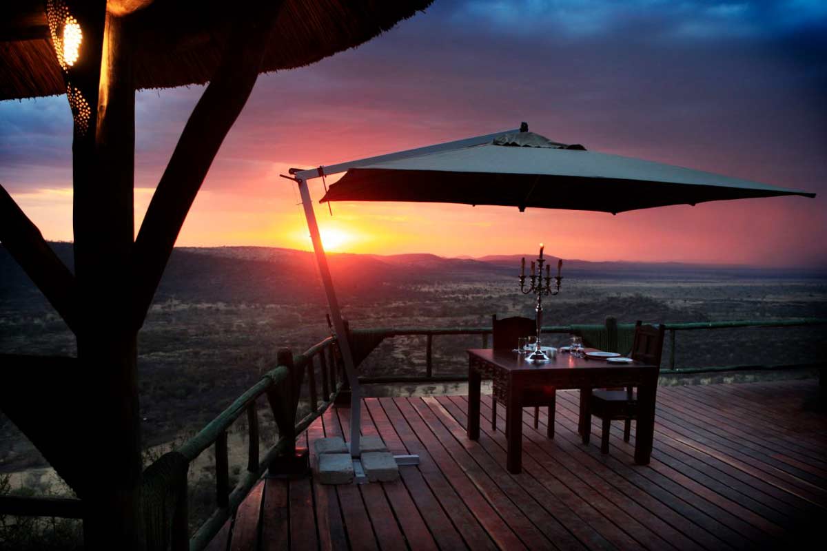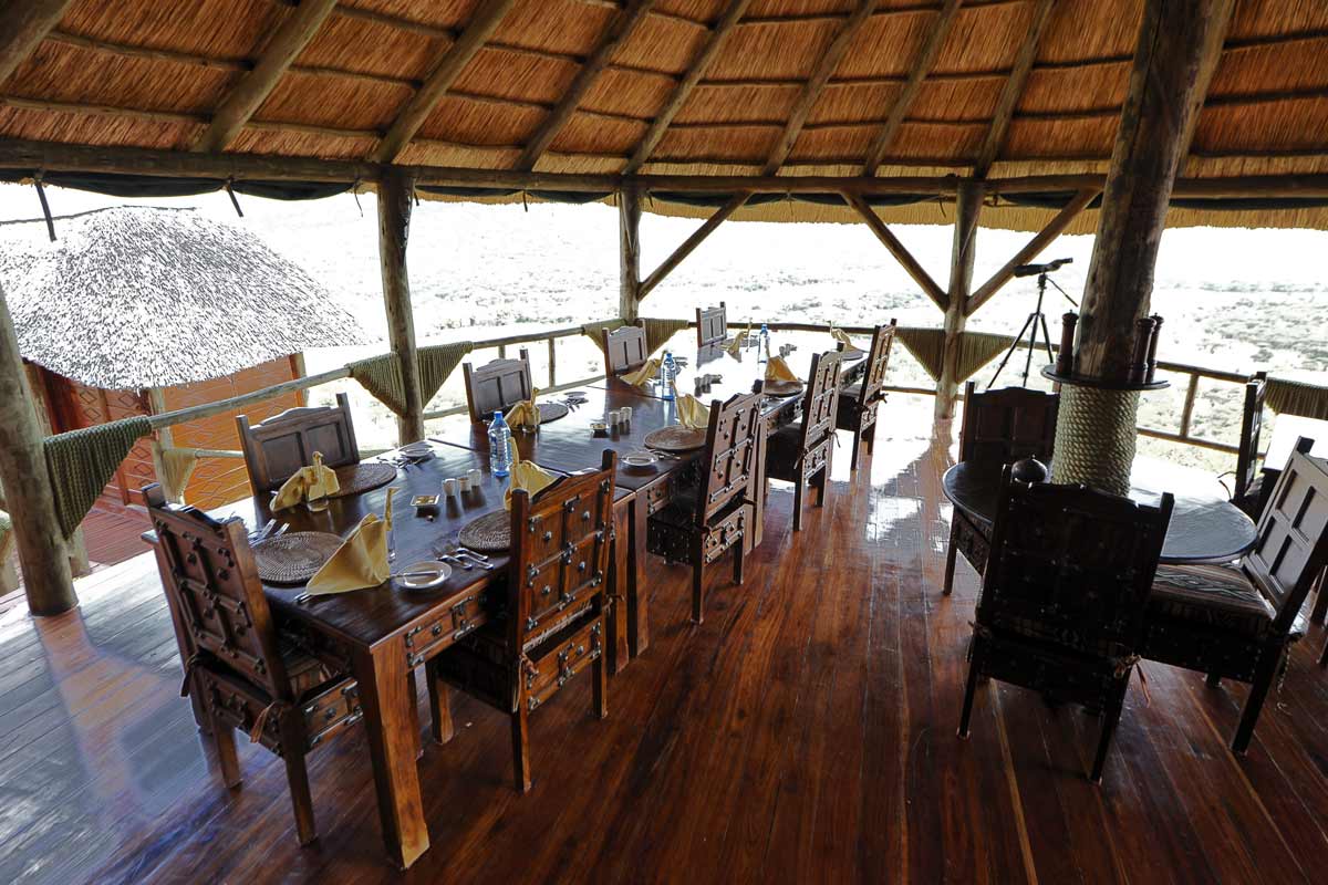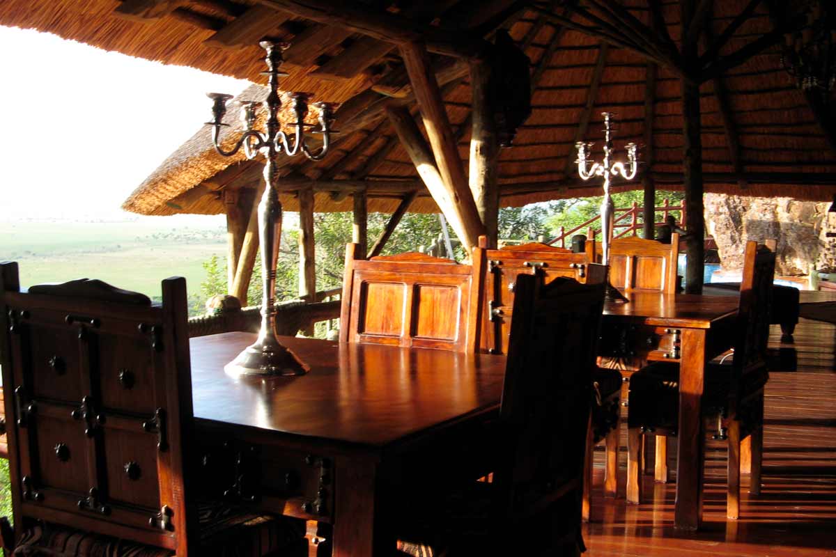 SOROI SAFARI LODGE offre des parties communes qui se répartissent sur plusieurs étages où de vastes terrasses offrent une vue spectaculaire sur les plaines vallonnées de Musabi. Leur style est un peu déroutant (chaises de bois qui semblent provenir d’un manoir écossais), quelques petites fautes de goût ont presque heurté nos yeux exercés (canapés en faux cuir) et l’ensemble manque un peu de chaleur. Mais il est peu probable, avec de telles chambres, que vous y passiez beaucoup de temps en dehors des repas. La nuit, le charme opère plus nettement avec le coucher de soleil impressionnant et les éclairages tamisés.