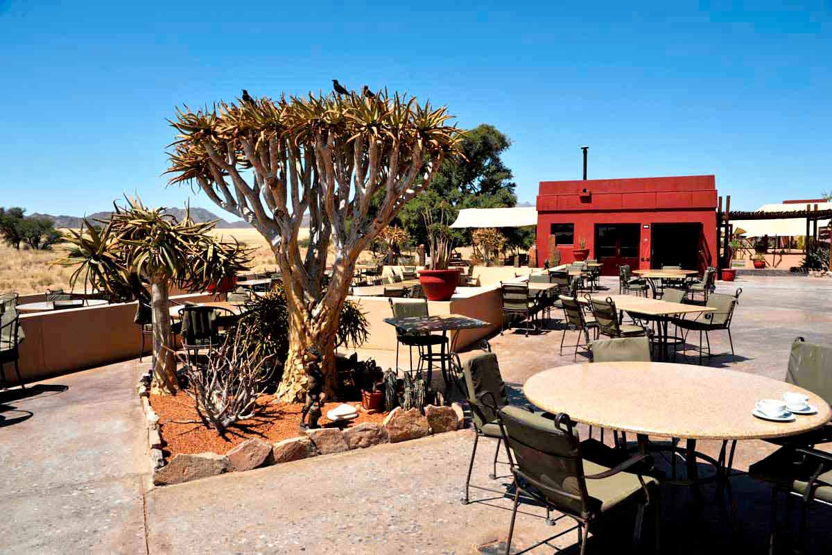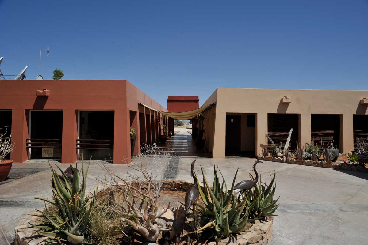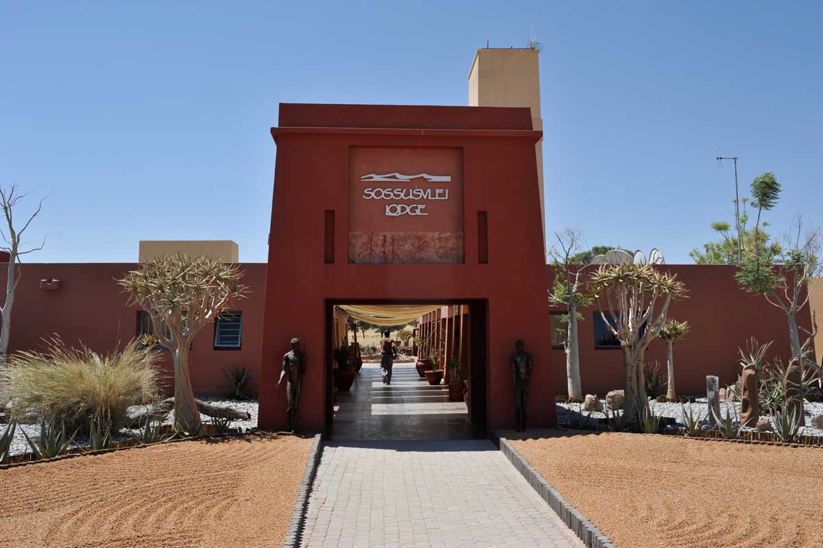 Sossusvlei Lodge est un hébergement agréable situé juste à l’entrée du parc du Namib. Un emplacement qui fait oublier sa capacité importante et le manque d’originalité de sa décoration…