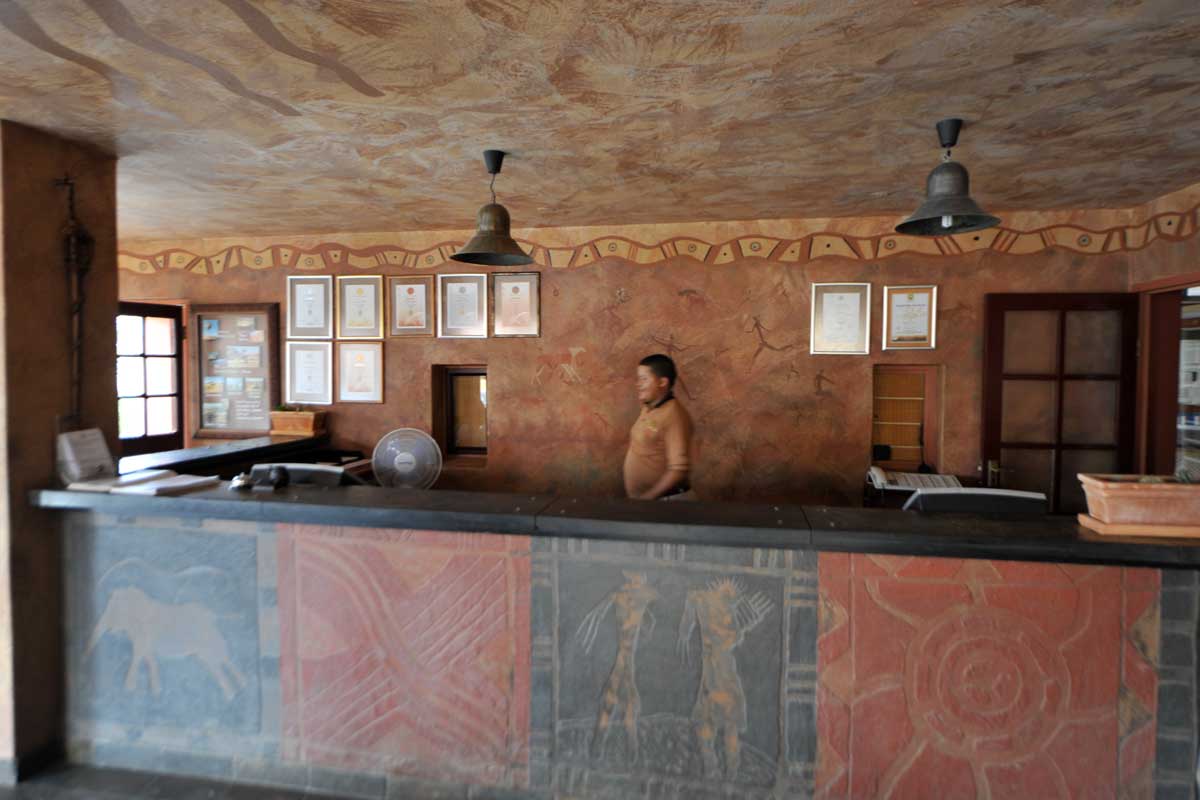 Les parties communes du Sossusvlei Lodge sont agréables mais ne présentent pas de réelle originalité et la décoration ethnico-colorée n’est pas d’un raffinement subtil…