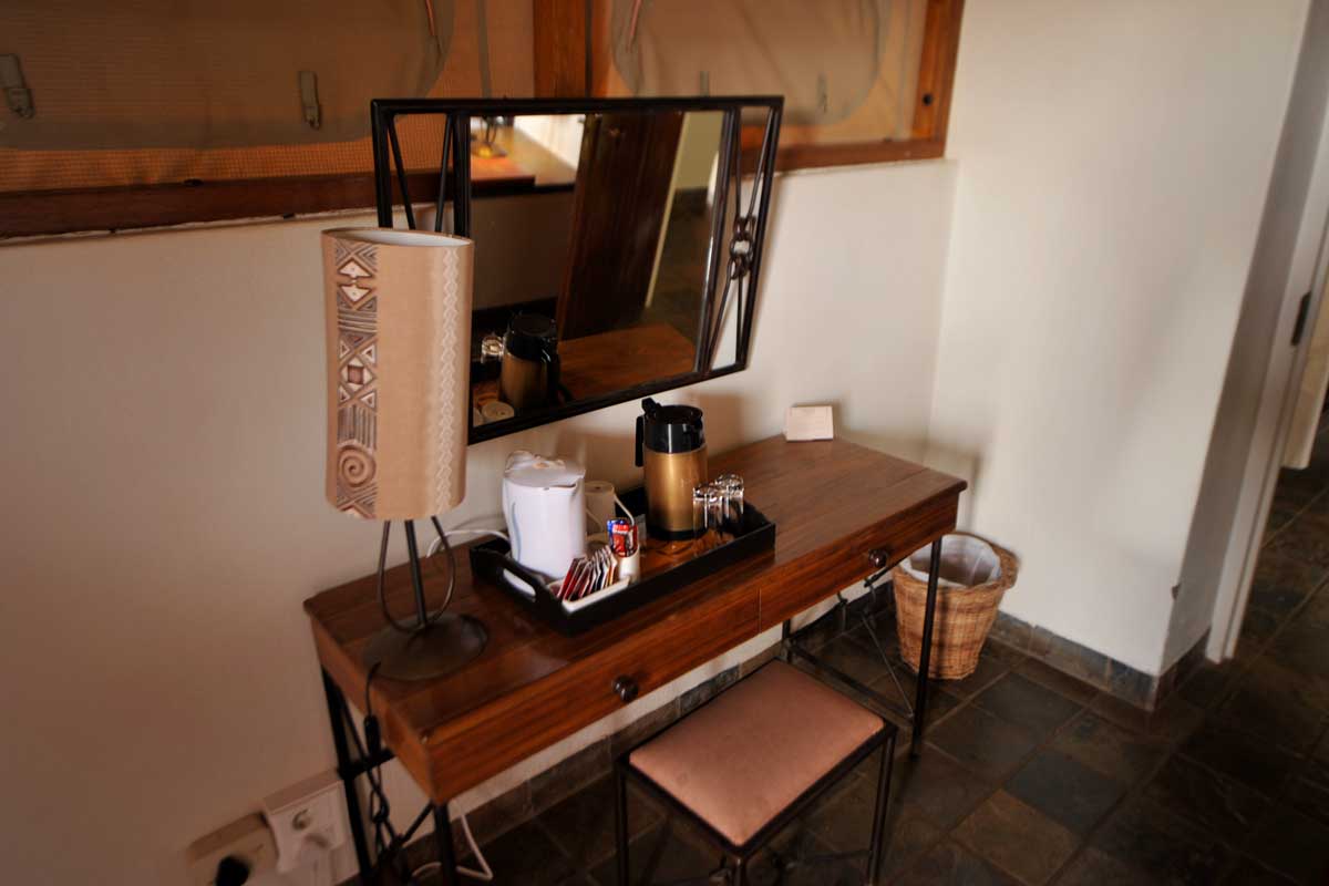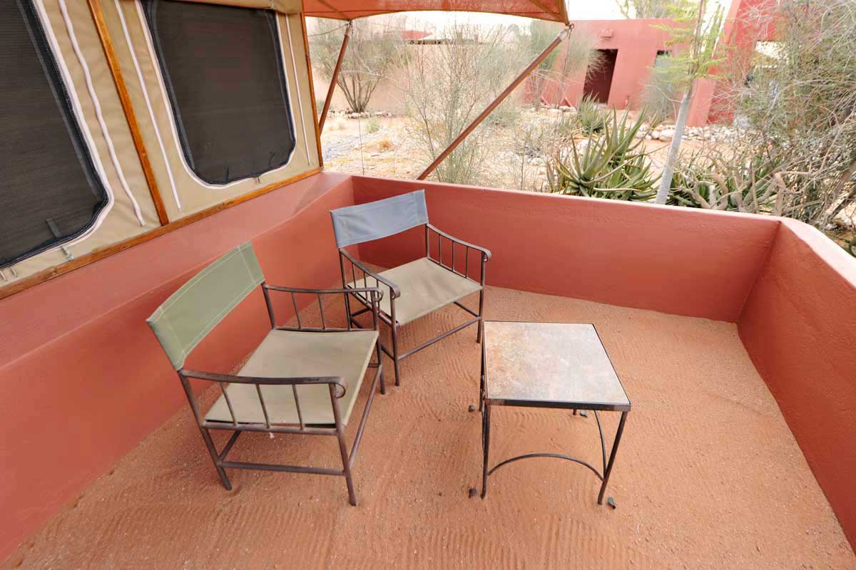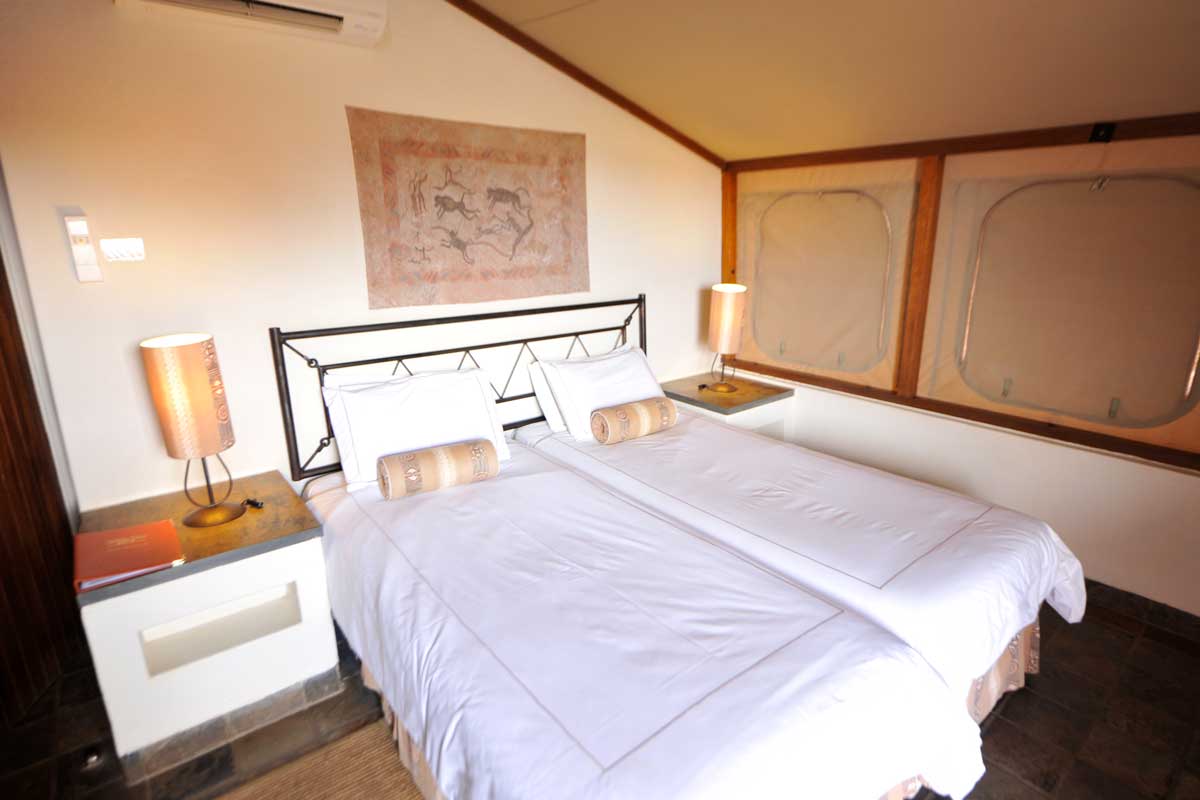 Sossusvlei Lodge compte 51 chambres disséminées de part et d’autre des parties communes. Certaines offrent une vue splendide (quand elles sont situées au premier rang). Elles présentent une structure mixte avec un sol « en dur » et des parois en toile de tente. Leur confort est appréciable.