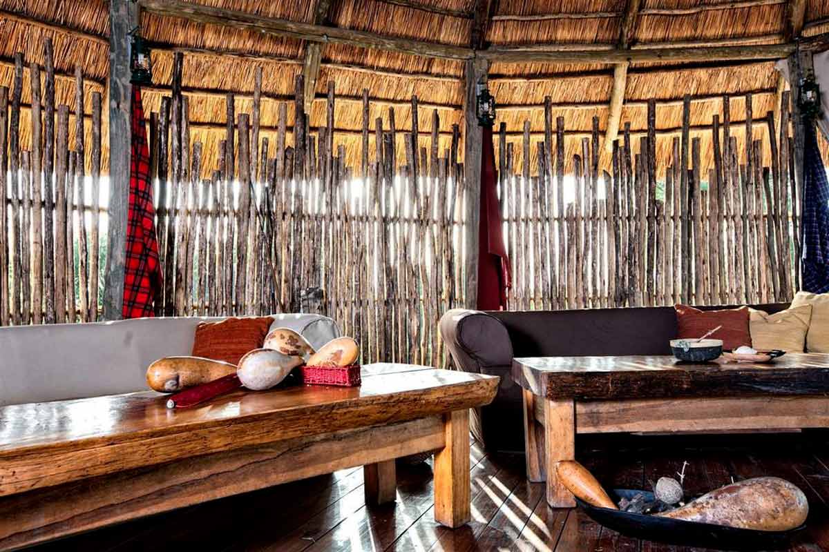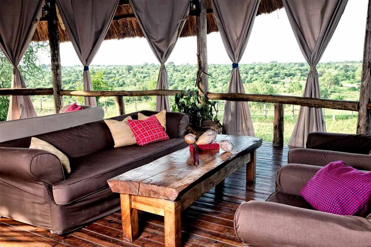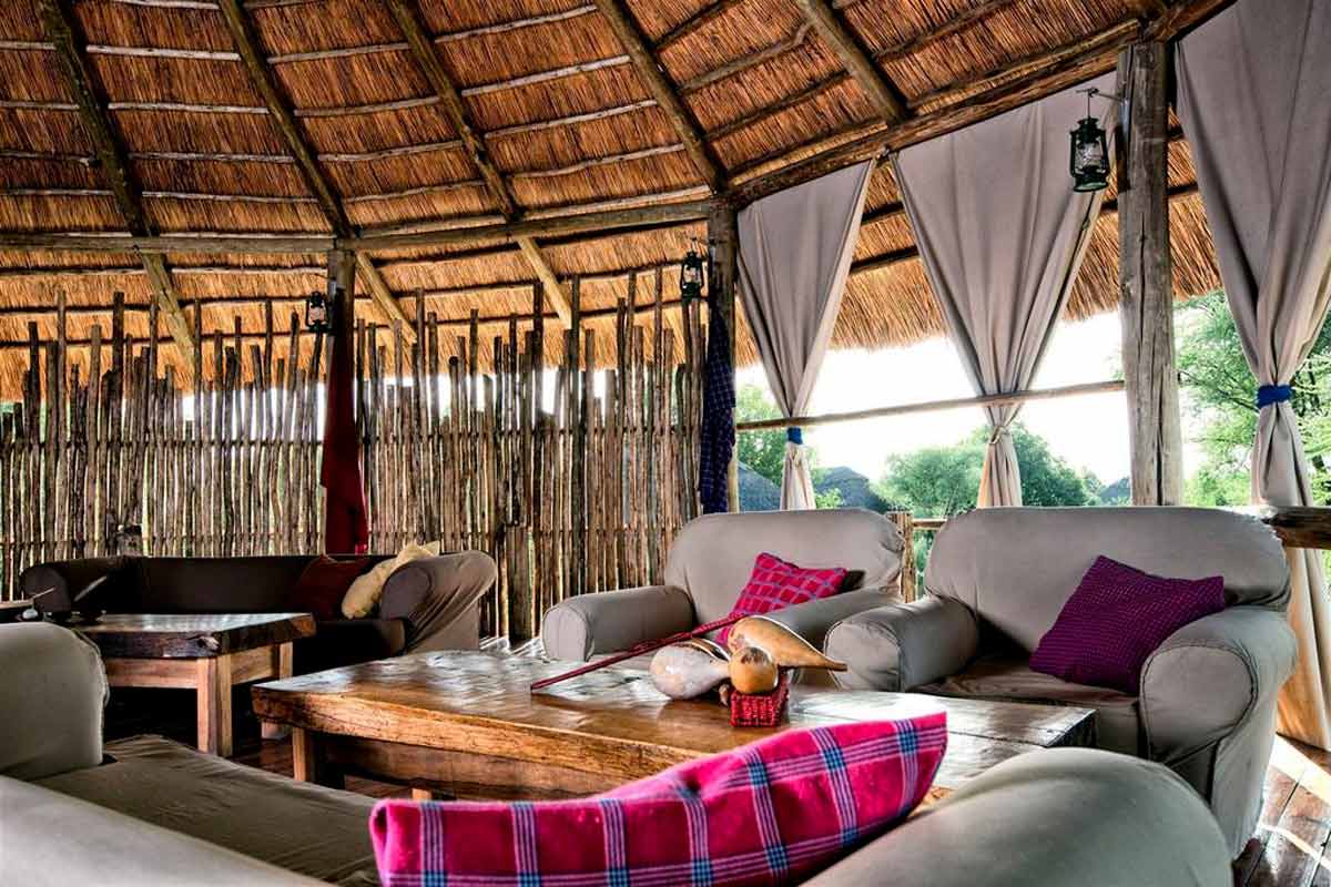 Les parties communes du TARANGIRE RIVER CAMP sont construites sur pilotis. Vastes et ouvertes sur l’extérieur, elles offrent un coin salon, une salle à manger et un observatoire qui se répartissent sur plusieurs niveaux. Une vaste terrasse complète cet ensemble et offre un espace qui accueille un agréable feu de bois le soir.