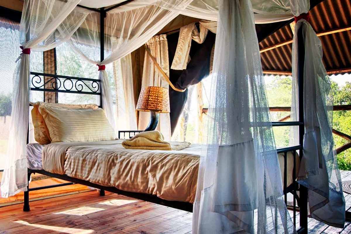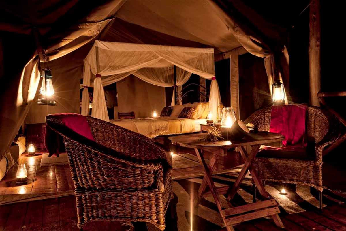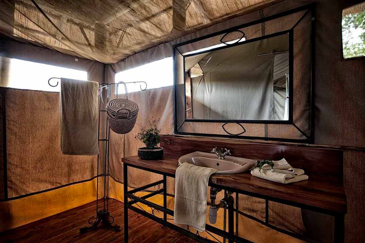 Les 20 tentes du TARANGIRE RIVER CAMP sont également construites sur pilotis. Abritées par des toits de chaume, elles proposent une grande terrasse, un lit à baldaquin avec moustiquaire (des lits jumeaux dans certaines chambres) et une salle de bains fort bien équipée. L’eau courante apporte un réel confort. L’eau est chauffée par des panneaux solaires et par conséquent utilisable plutôt en fin de journée. L’électricité est disponible et il est possible de charger les batteries.