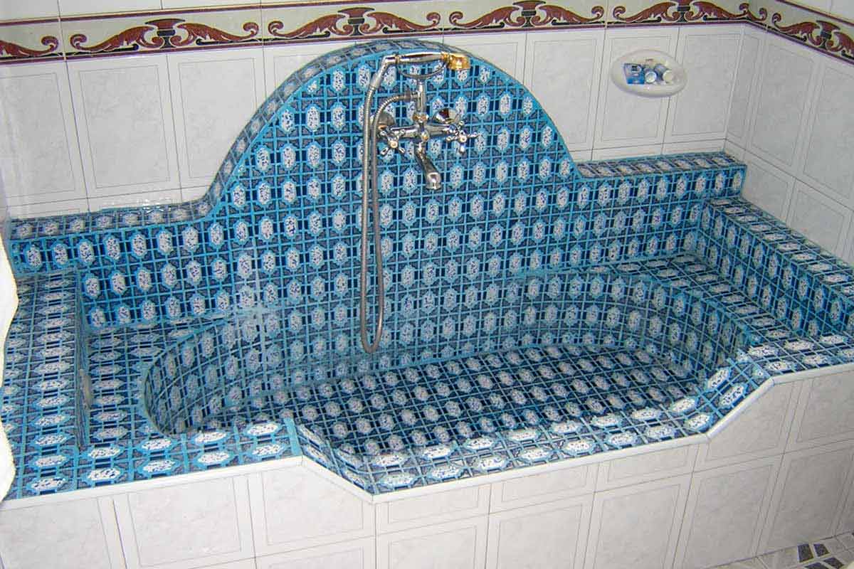 Certaines salles de bains sont exceptionnelles (en céramique bleue). Les autres moins…