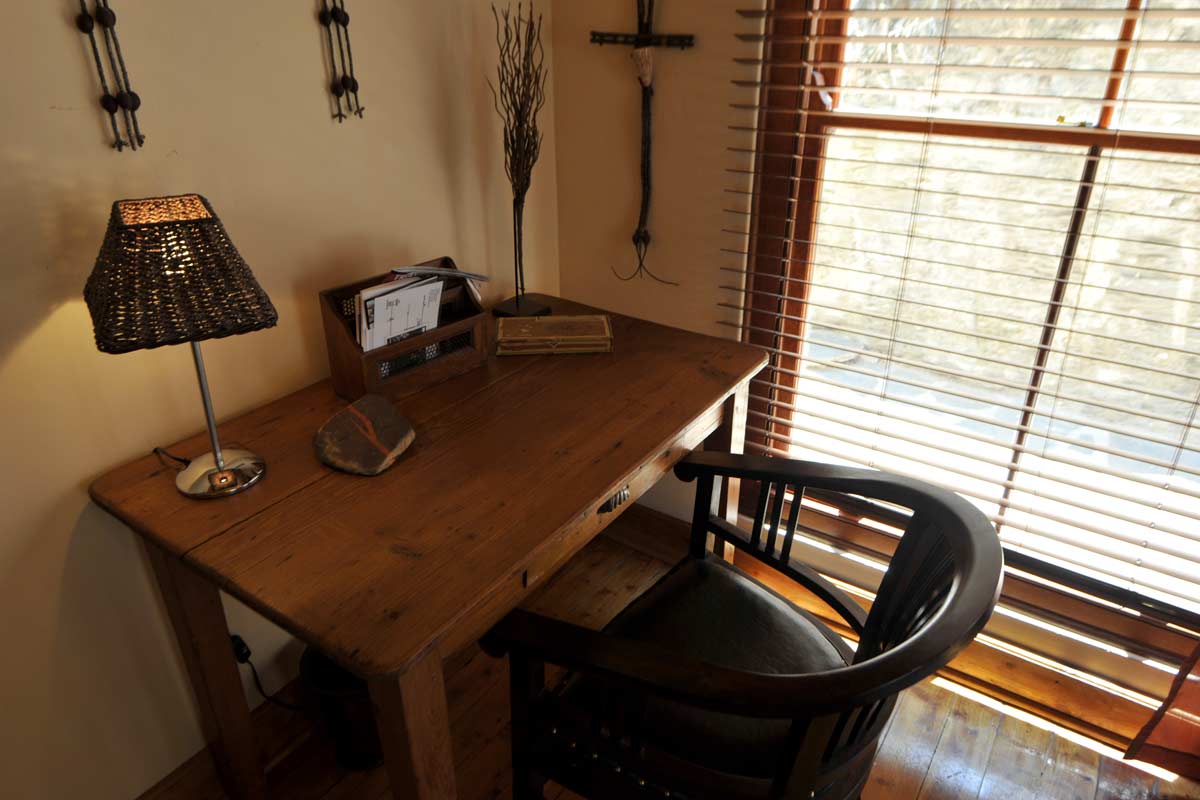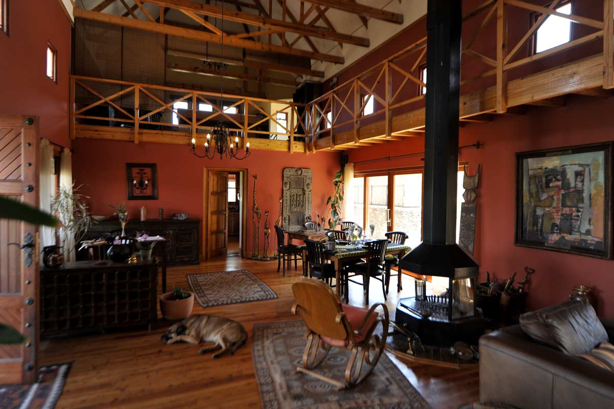 La pièce principale est haute de plafond et son mobilier constitué de vieux meubles chinés par les propriétaires.