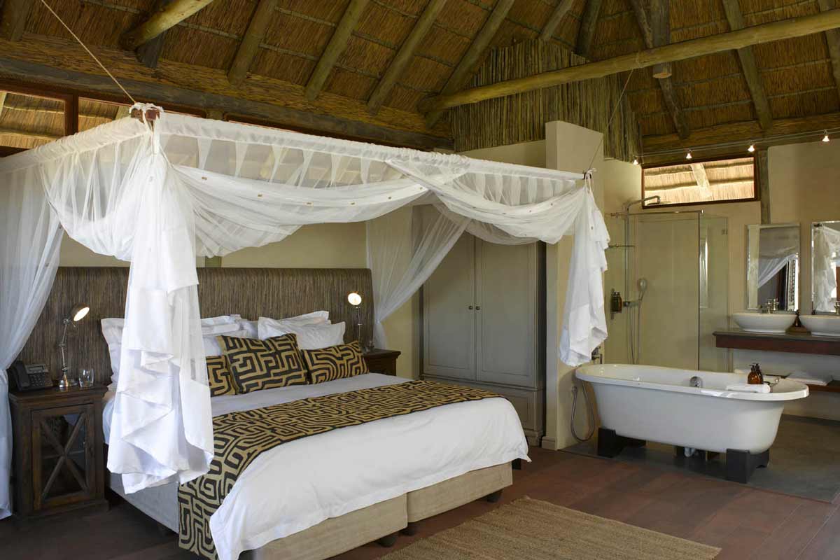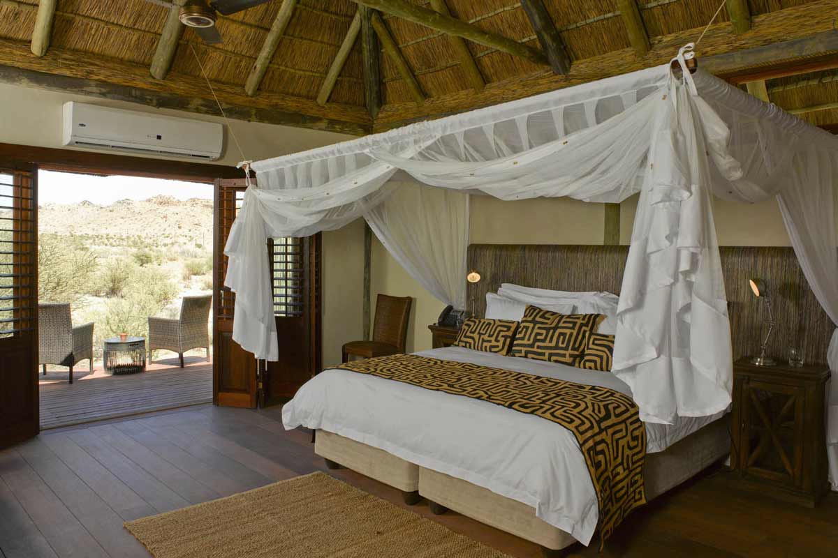 TUTWA DESERT LODGE propose 9 chambres spacieuses au toit de chaume et décorées avec soin dans des tons neutres et élégants :