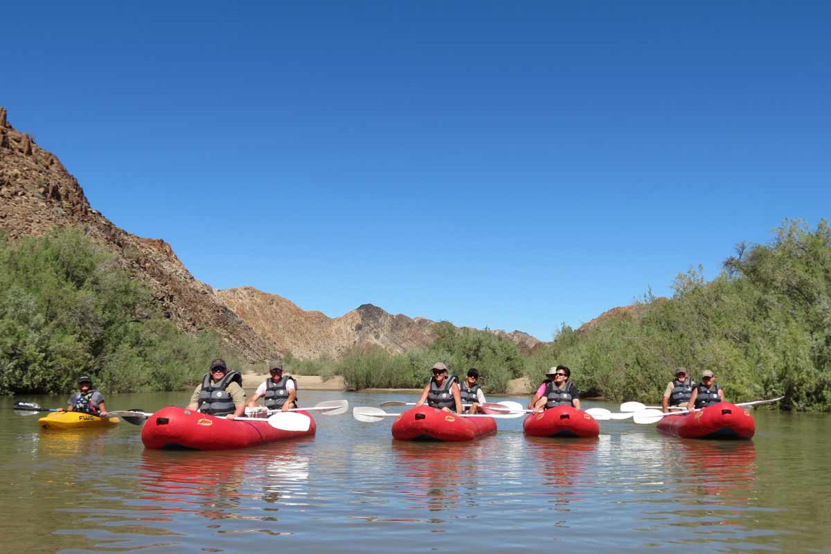 TUTWA DESERT LODGE, se trouve au Nord-Ouest de l’Afrique du sud, proche de la frontière avec la Namibie, entre les villes de Springbok et d’Upington. Il faut compter environ 2h20 de route depuis la ville d’Upington. C’est une région très peu peuplée dans laquelle il est encore possible d’apprécier pleinement de grands espaces à perte de vue. Cette région du Northern Cap est notamment célèbre pour sa beauté, d’août à octobre, période durant laquelle des milliers de fleurs sauvages éclosent pour laisser éclater de sublimes couleurs (notamment dans le Namaqualand). Mais la région est également connue des amateurs de safaris originaux, hors des sentiers battus. L’emplacement privilégié de TUTWA DESERT LODGE lui permet un accès exclusif à 24 kilomètres de berges de l’Orange River, le plus long fleuve d’Afrique du Sud. Vous pourrez y participer à des activités nautiques comme la pêche, le rafting ou du canoë, en plus des safaris en 4×4 proposés par le lodge. Ceux-ci vous permettront d’observer notamment des zèbres, des léopards, des girafes et de nombreuses antilopes. Au TUTWA DESERT LODGE, vous aurez aussi la chance de participer à des safaris de nuit. Le lodge prévoit 2 safaris quotidiens en véhicules 4×4 partagés avec des chauffeurs-guides anglophones. Il est également impliqué dans un projet de protection des léopards ainsi que dans plusieurs programmes relatifs à la protection de la nature, de la faune et de la flore de cette région reculée si belle et si fragile.