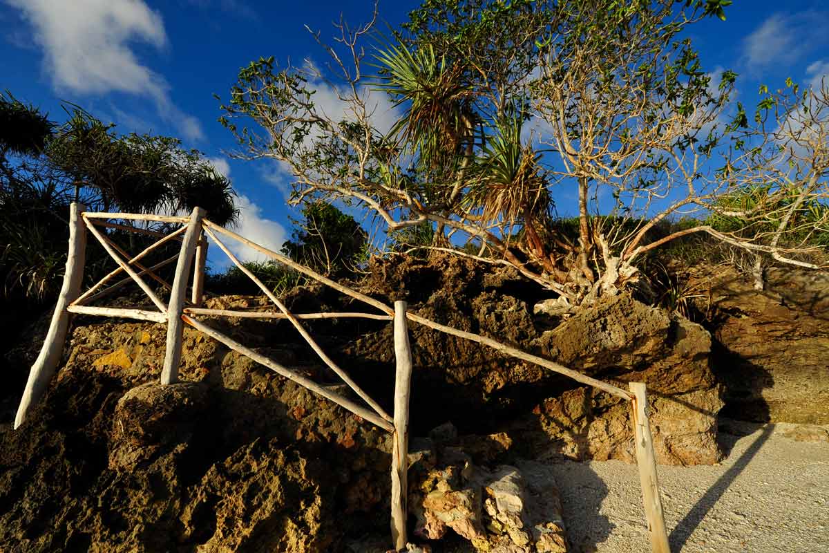 La plage présente quelques défauts : comme presque partout sur l’île, à marée basse, le récif corallien se découvre, rendant la baignade difficile.