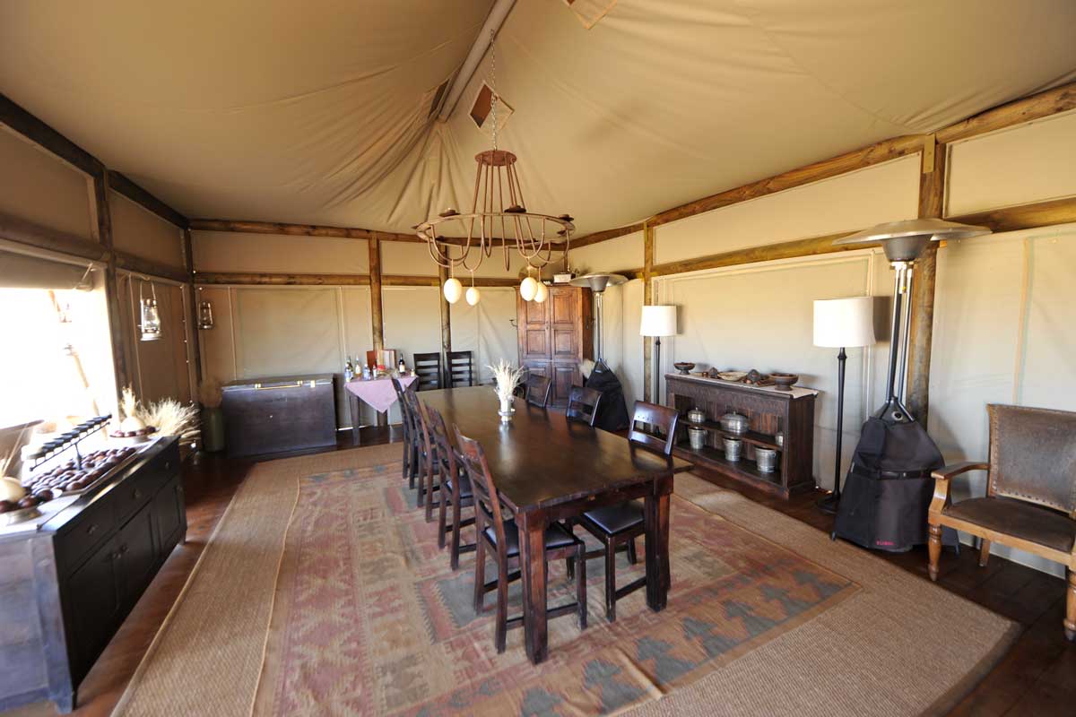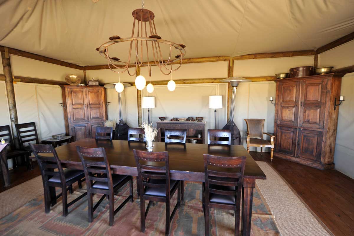Les parties communes se tiennent sous 2 tentes qui se dressent sur des plateformes en bois.