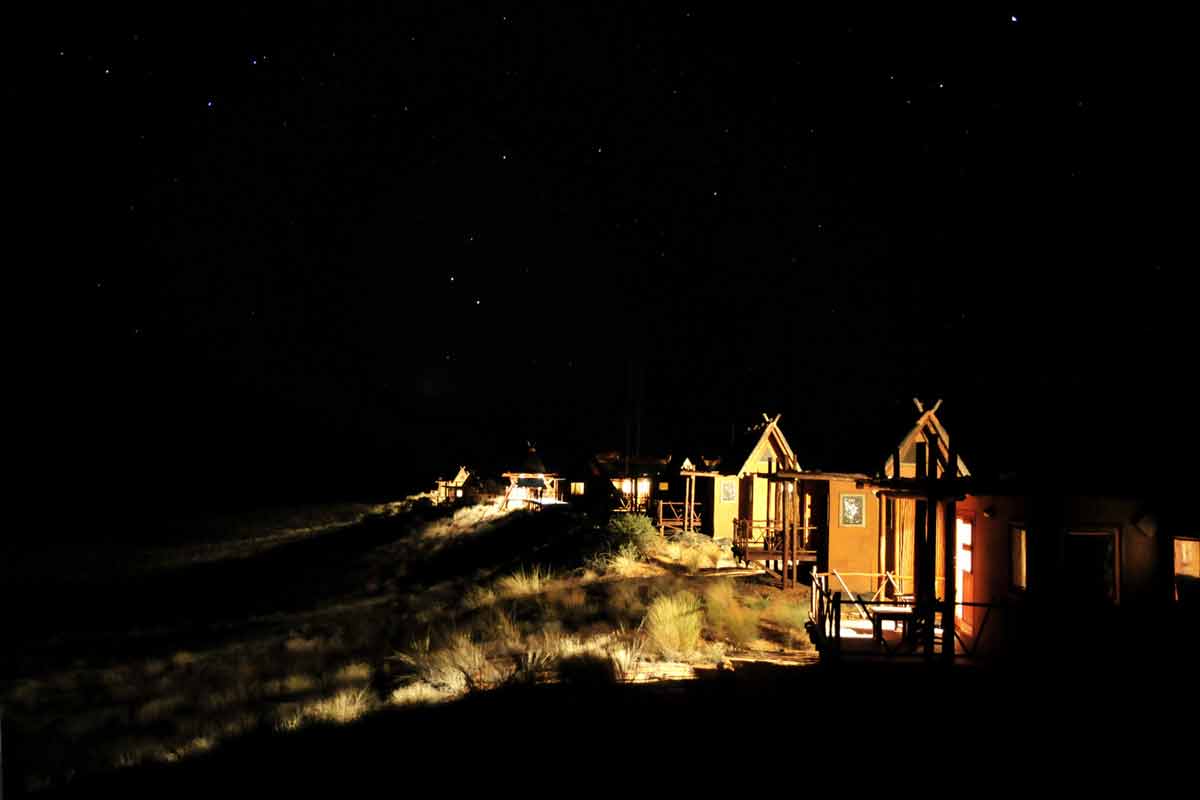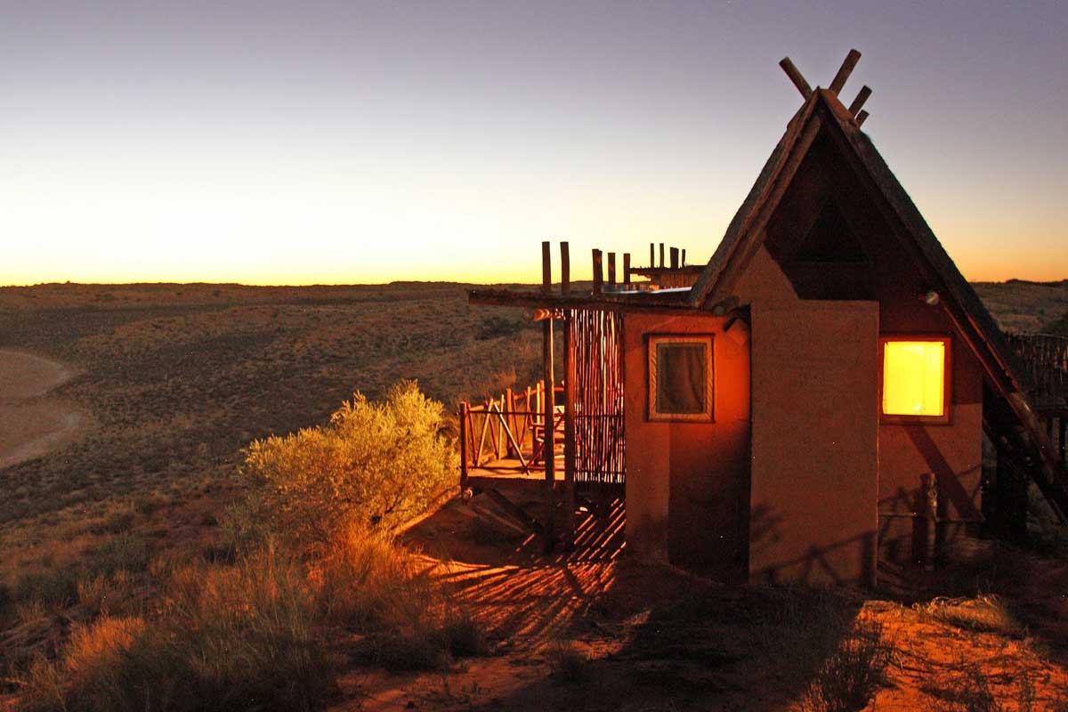 Le Kgalagadi Transfrontier Park est un immense territoire d’une superficie de presque 2 fois le Park Kruger. XAUS LODGE est composé d’un bâtiment principal qui comprend la réception, une bibliothèque, un espace salon doté d’une cheminée et la salle où sont servis les dîners. Et, pour l’hébergement XAUS LODGE propose 12 chalets qui possèdent tous une terrasse sur pilotis, face à l’immense « saltpan » (lac asséché), véritable point central du lodge. Profitez de ces paysages et de ce calme pour vous reposer et faire le plein d’énergie. En effet, ici ni téléphone portable, ni télévision, ni Wi-Fi. Vous pourrez bénéficier du calme, des paysages d’une grande beauté et de safaris qui vous permettront de voir des zèbres, des gnous, des girafes, des lions… Le lodge prévoit 2 activités par nuit passées (une le jour d’arrivée, une le lendemain matin). En général, il s’agit d’un safari en 4×4 l’après-midi, à la recherche des animaux sauvages qui peuplent ce parc très photogénique. Vous serez surpris par le nombre d’animaux adaptés à cet environnement hostile de prime abord. Le soir, l’observation des étoiles est également proposée. Le matin, vous marcherez dans les dunes avec un guide qui vous apprendra à reconnaitre les empreintes des animaux et qui vous donnera des explications sur les plantes et leurs vertus médicinales. Pour les personnes passant plusieurs nuits, un long safari en 4×4 (6 à 7 h)  peut également être réservé sur place (avec supplément).