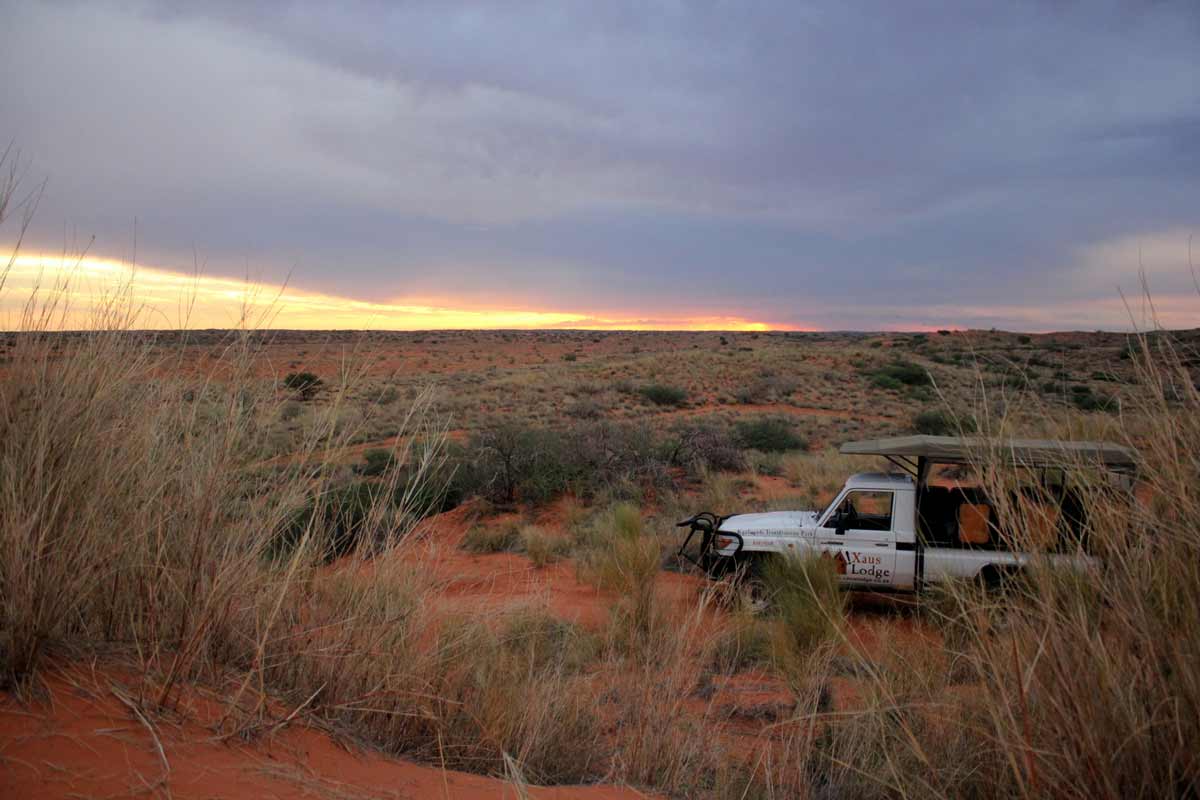 XAUS LODGE se trouve à quelques heures de route de la ville d’Upington dans le Kgalagadi Transfrontier Park que vous rejoindrez en 3h. Depuis l’entrée du parc, vous continuerez sur une piste jusqu’au « Kamqua Picnic Site ». Vous laisserez votre véhicule dans un parking gardé puis, à 14h30 (attention : un seul transfert par jour à cet horaire précis), serez transférés jusqu’au lodge en 4×4. En route, vous effectuerez votre premier safari.
