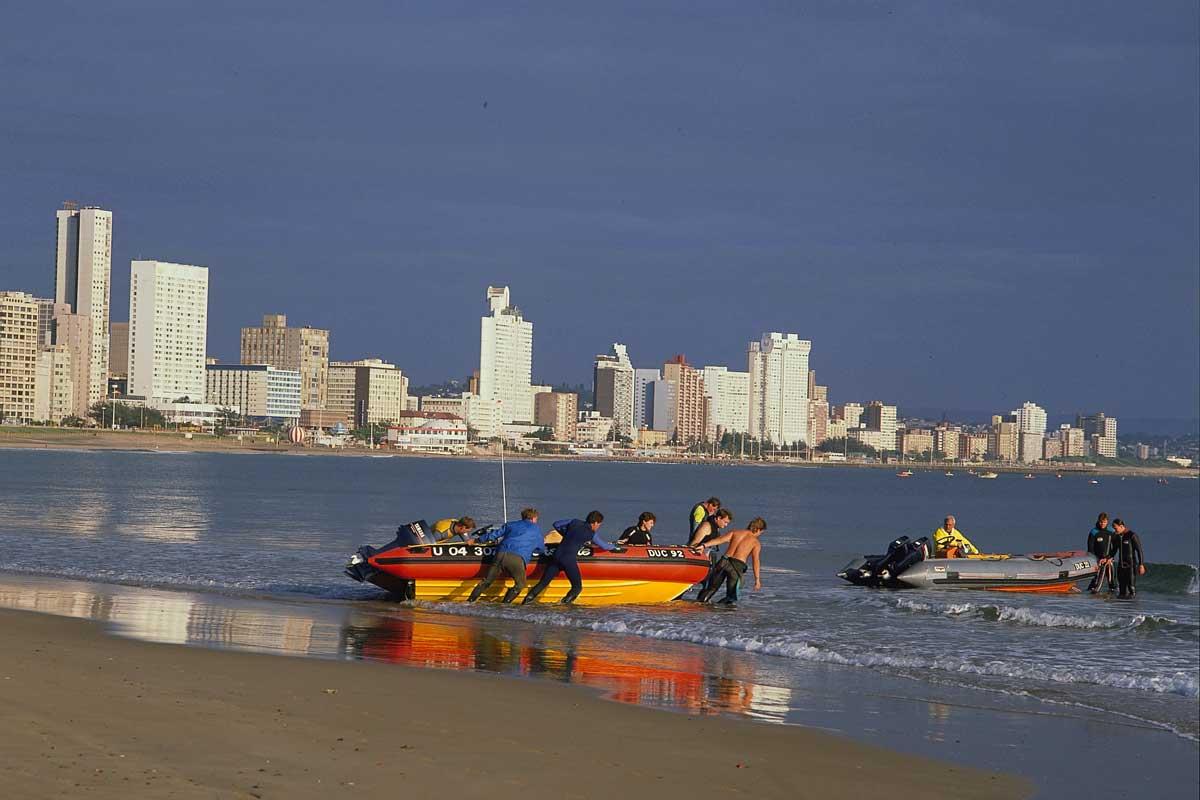 La côte au sud et immédiatement au nord de Durban ne présente pas énormément d’intérêt, les constructions y étant fort nombreuses, l’urbanisation quelque peu hasardeuse et les plages parfois assez peu accueillantes (les vagues rendent souvent la baignade difficile). La ville de Durban elle-même n’offre, à nous yeux critiques, aucun intérêt qui mérite plus qu’une éventuelle nuit à l’arrivée ou au départ s’il n’existe vraiment aucun moyen de l’éviter…