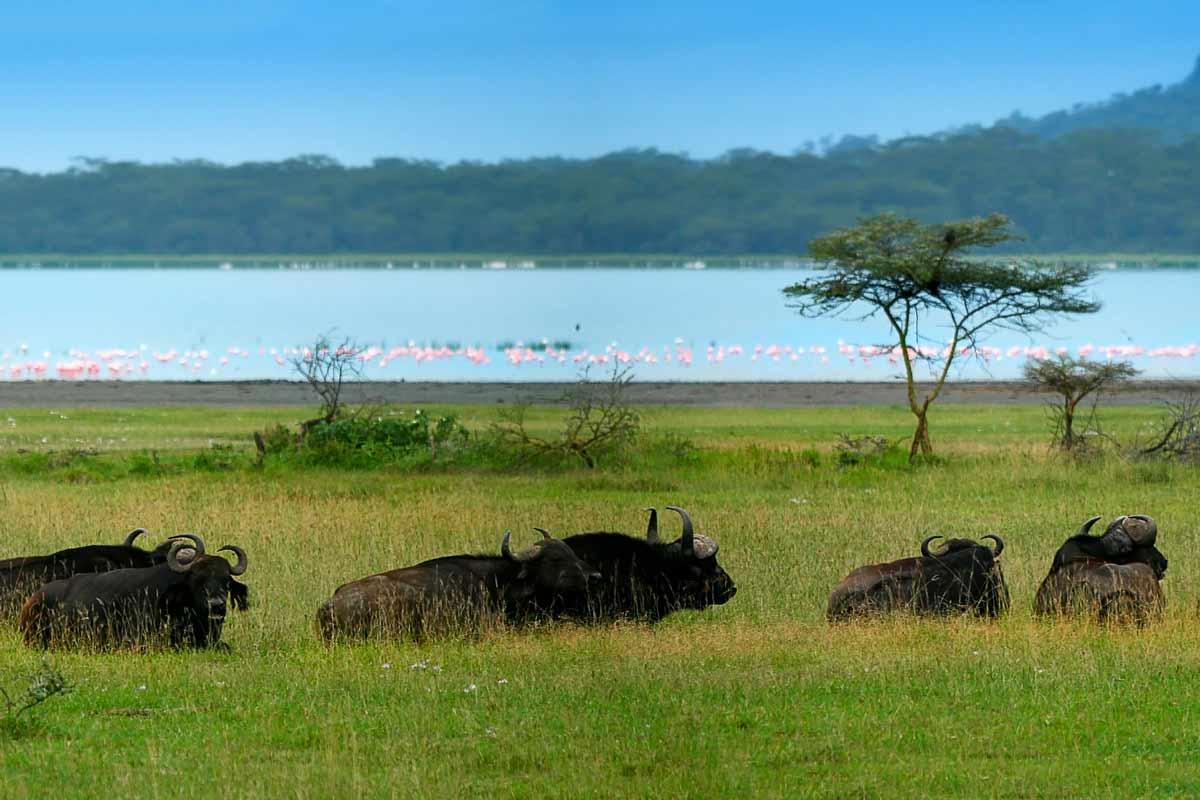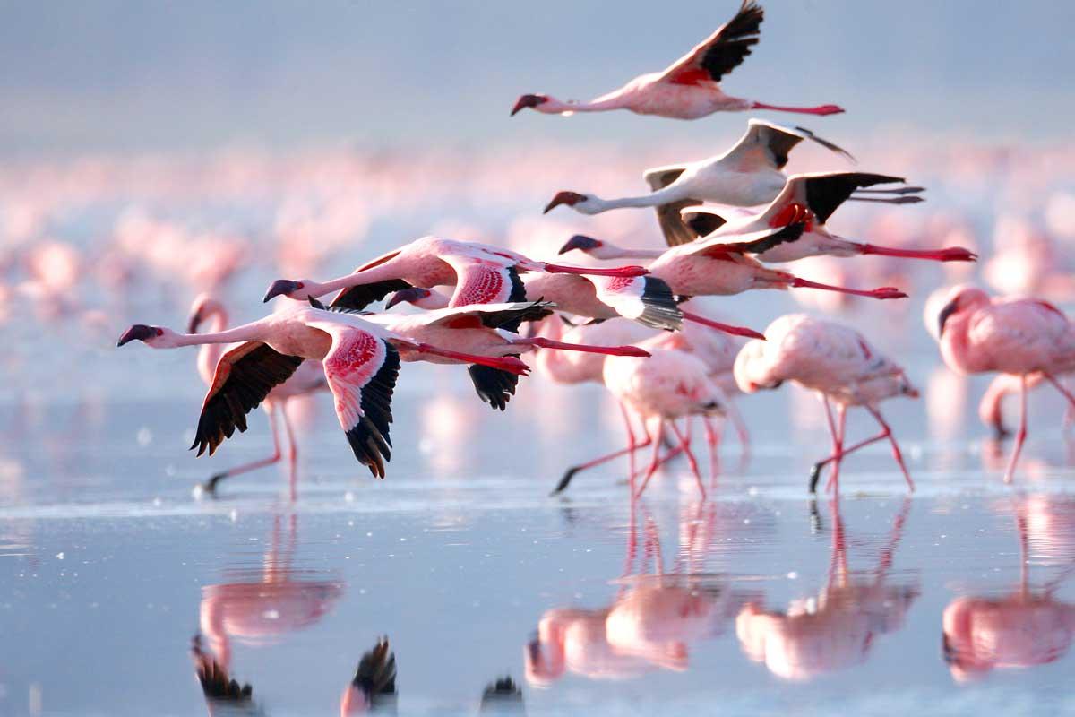 Leur présence au lac Nakuru s’explique par les eaux alcalines et leur température élevée qui permettent le développement d’une algue dont les flamants se nourrissent. Les déjections des oiseaux favorisent même la croissance de ces algues. Preuve que la nature est bien faite!