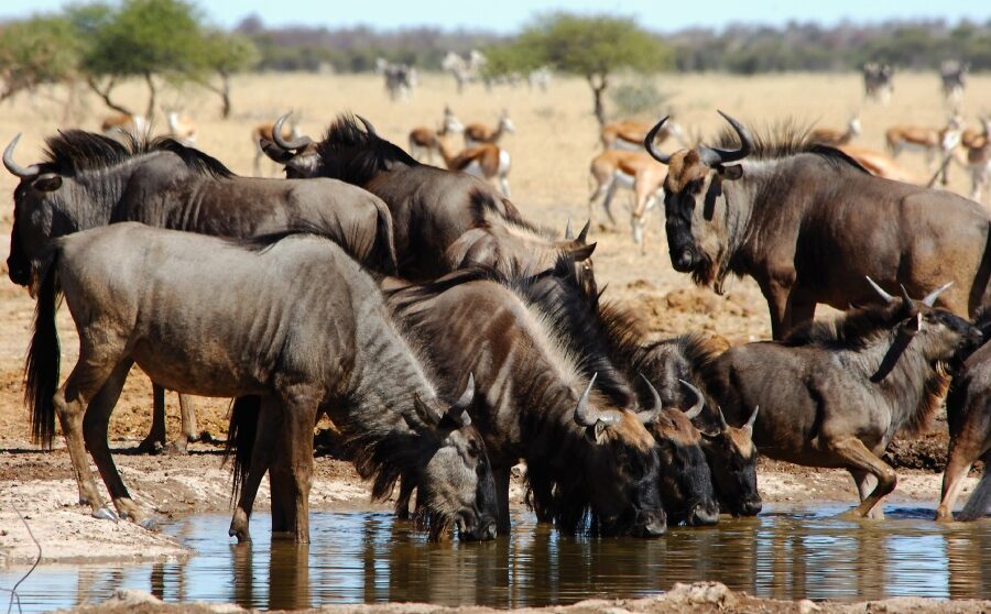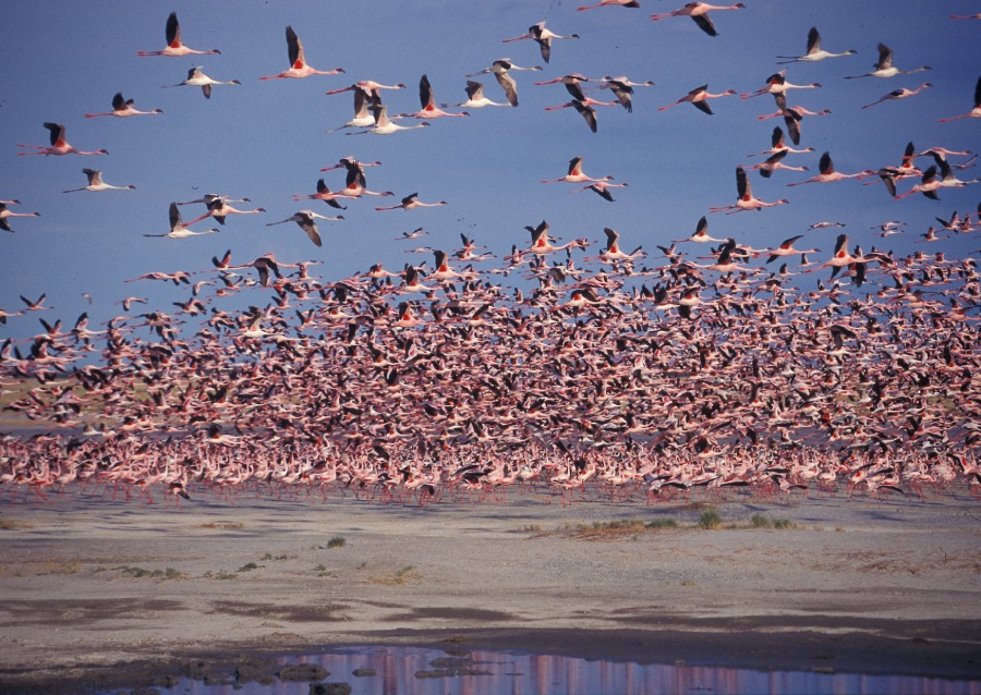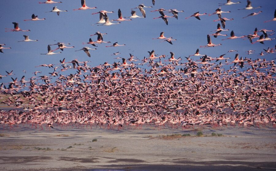 Mais lorsque la saison des pluies arrive, l’eau et les inondations de la rivière Boteti transforment le pan et la vie reprend ses droits :  des milliers de flamants roses occupent les airs, tandis qu’une grande migration de zèbres bat la poussière et attire les prédateurs … l’avant et l’après saison humide sont les meilleurs moments pour observer les mouvements migratoires des troupeaux, mais les mois de décembre à mars, correspondants aux pluies, sont également propices aux scènes de chasse et de naissances.