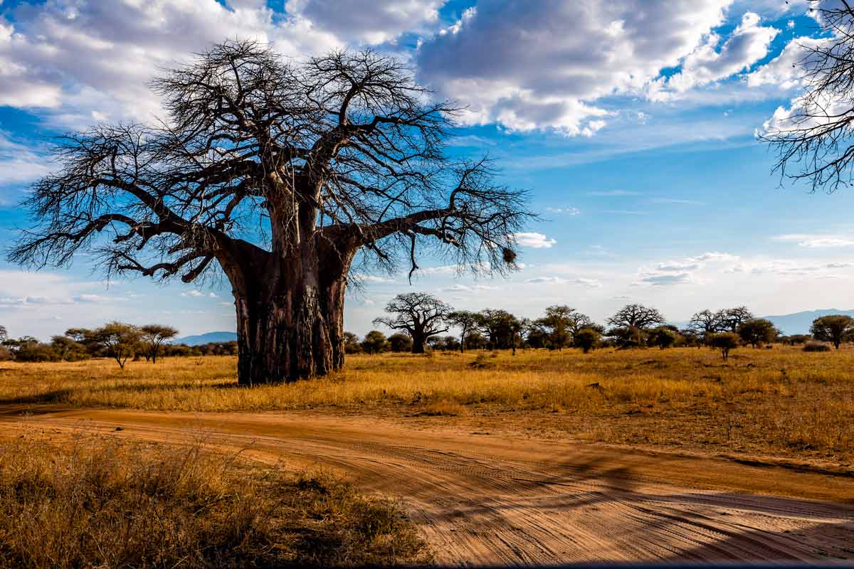 Le Tarangire est particulièrement réputé pour ses baobabs que l’altitude assez peu élevée (en comparaison des autres parcs) autorise ici. Spectaculaires, immenses, ils dressent leur branches tordues et dépourvues de feuilles une grande partie de l’année. Les baobabs sont mous et spongieux, gorgés d’eau et peuvent vivre jusqu’à 200 ans!
